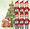 Cute Christmas Chibi boys holding Christmas gift. 6 boys plus FREE background. Eye and hair colour options. Sublimation, print. PNG
