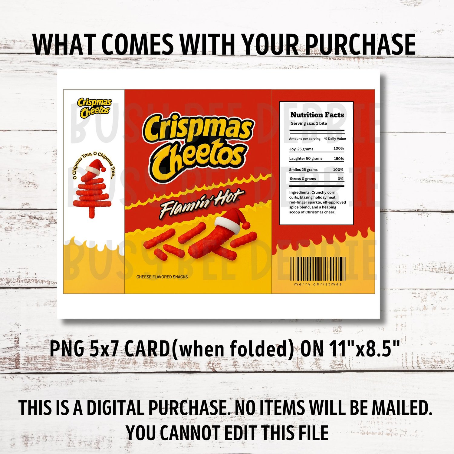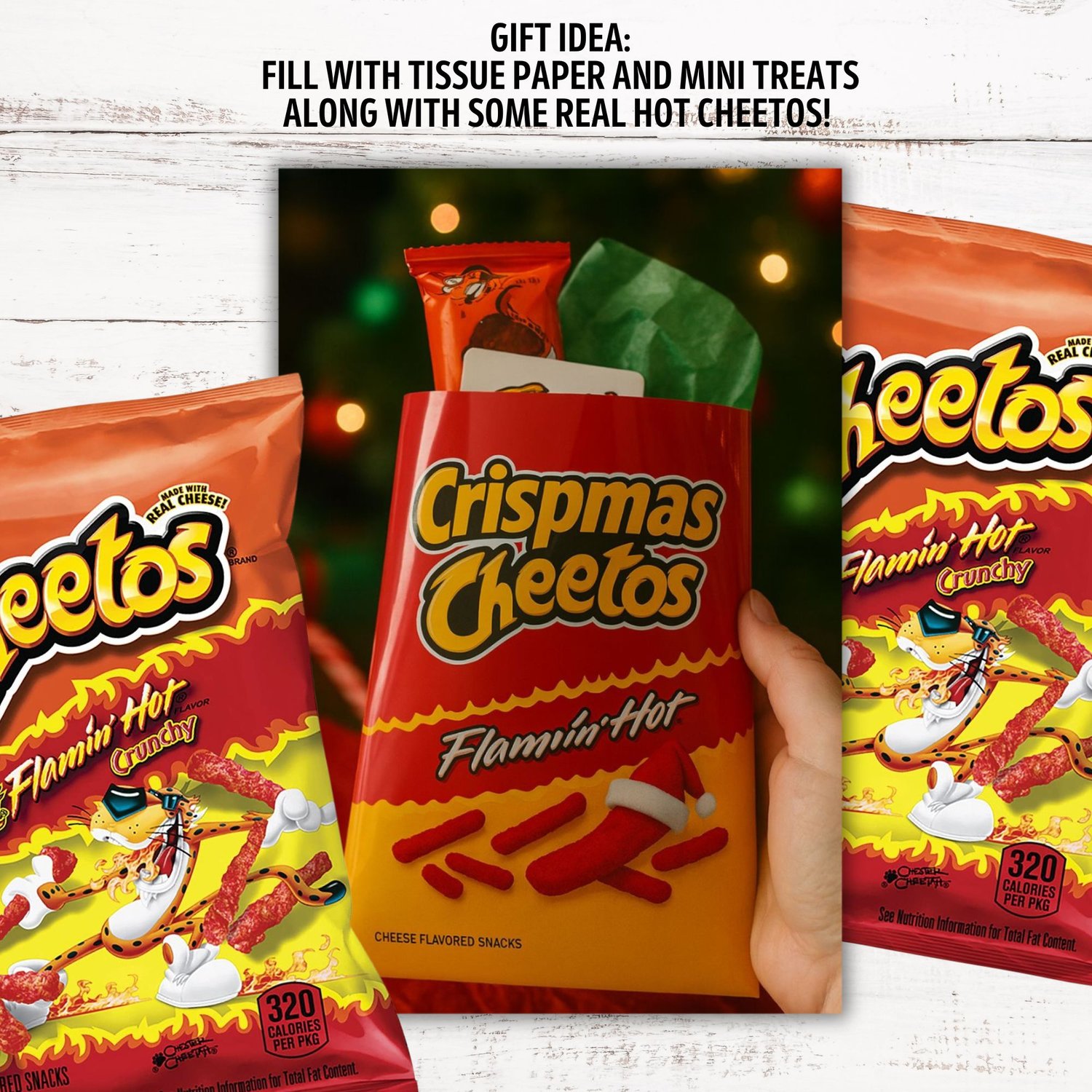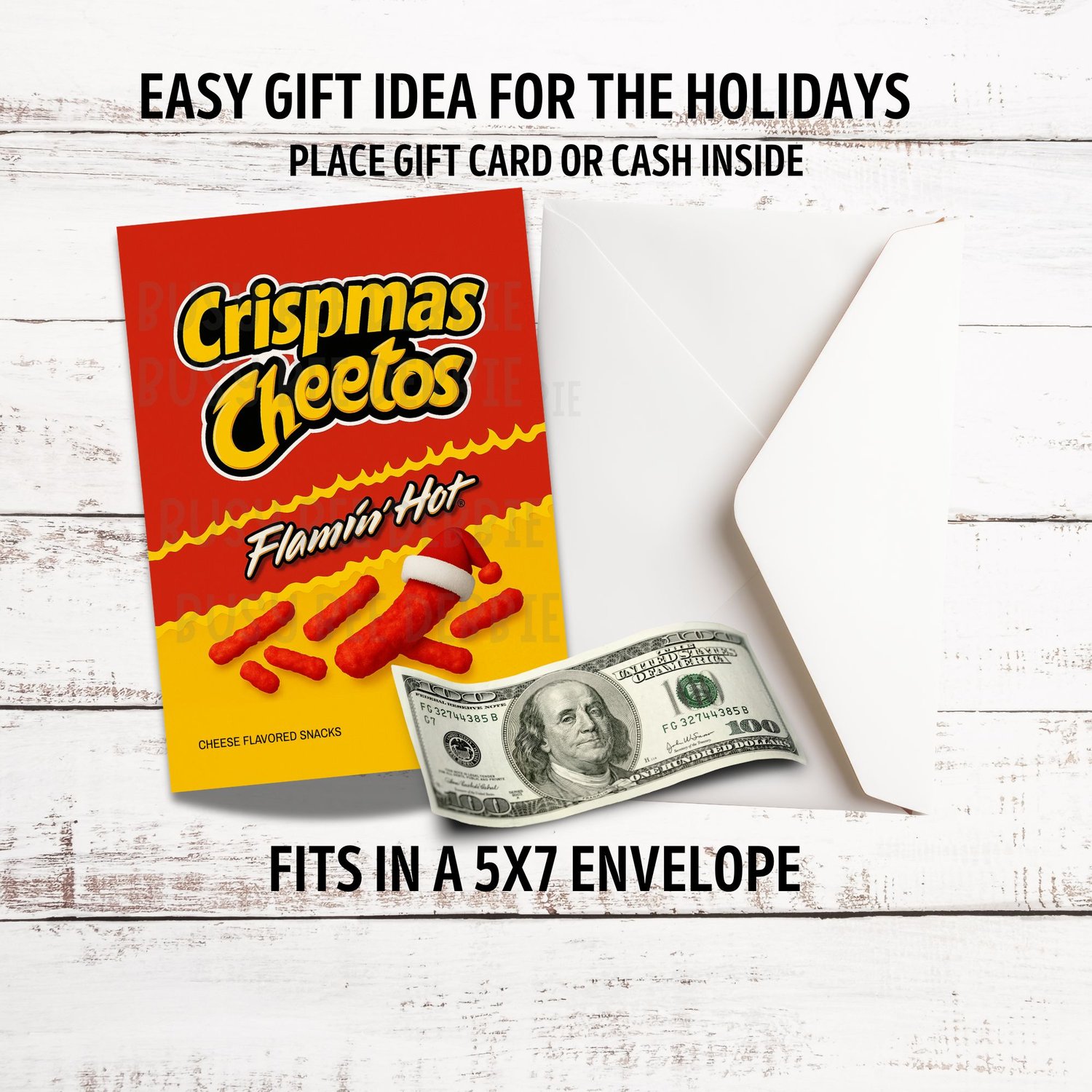 Turn cash or gift cards into a Flamin’ hot Christmas surprise with this printable Hot Cheetos–themed holder template. Instant download, super easy to assemble! Great for friends, family, teenagers, or coworkers.