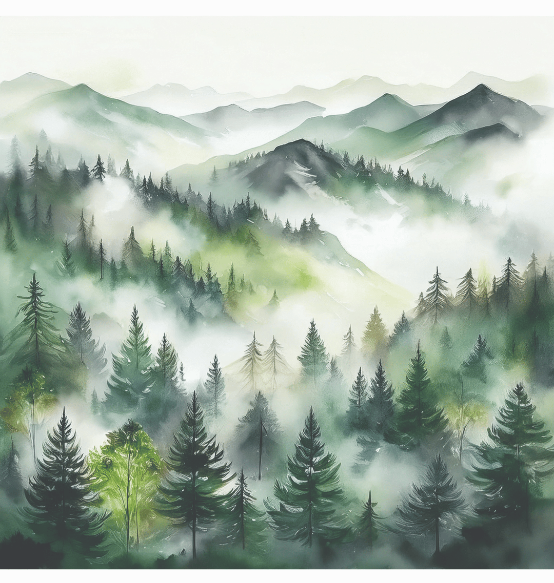 Foggy Forest Poster, Misty Mountain Print, Autumn Landscape, Nordic Poster, Pine Trees Wall Art, Digital Download.