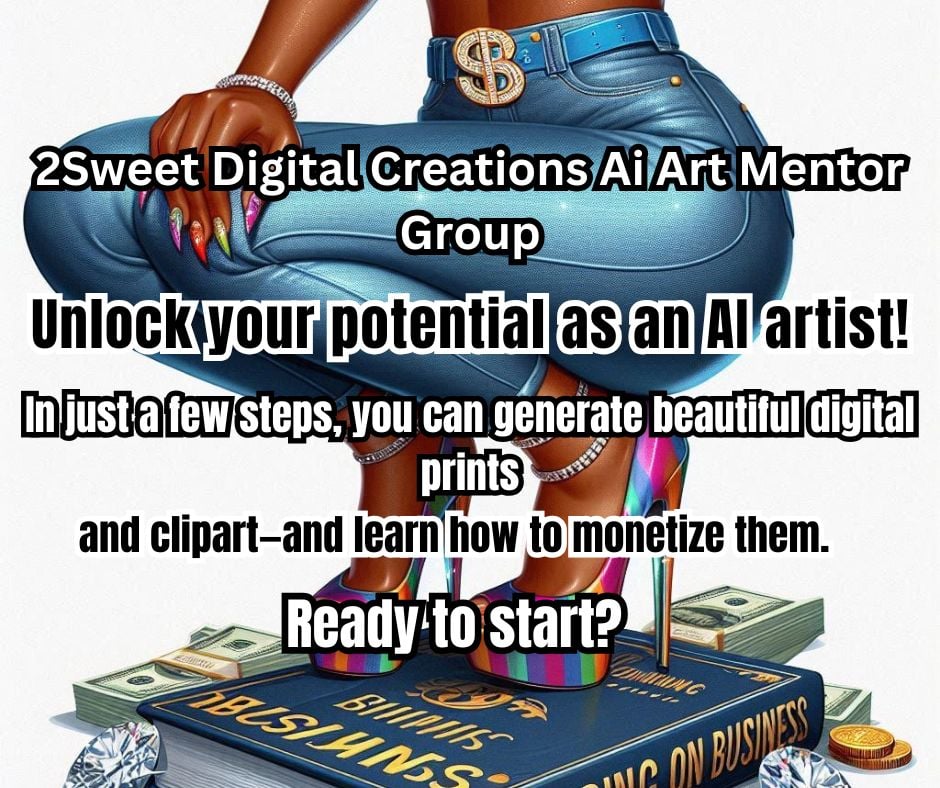 Ready to turn your curiosity about AI art into a profitable skill? The AI Art Mentor Group is designed specifically for beginners and those with little experience in AI-generated art. This group will guide you through the fundamentals of AI, show you how to create stunning digital prints and clipart, and help you package them for sale on various eCommerce platforms. With a focus on hands-on learning, you’ll gain the knowledge and tools to start monetizing your AI creations right away.
