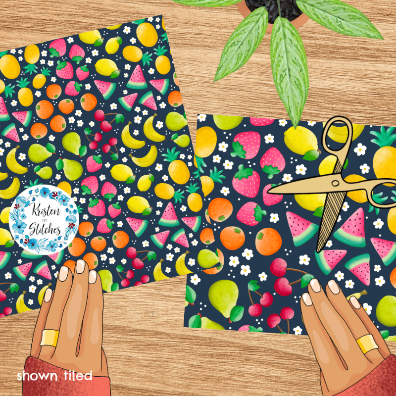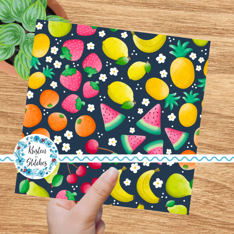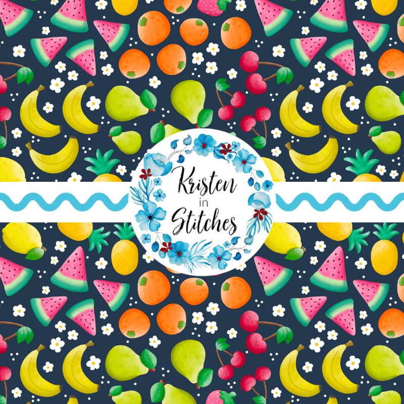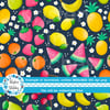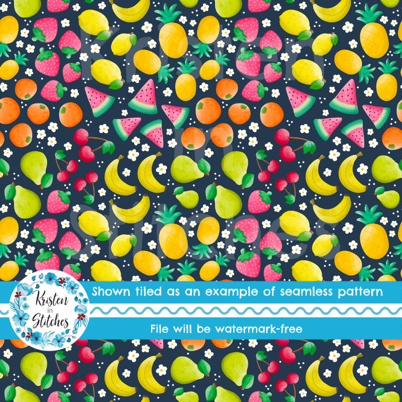 Summer Fruit Floral Seamless Pattern, Watermelon, Cherries, Strawberries, Pineapple