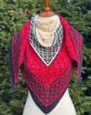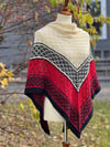 Elevating your winter wardrobe with this ethereal white-red-black shawl. The lace and mosaic design adds a touch of sophistication to any outfit.