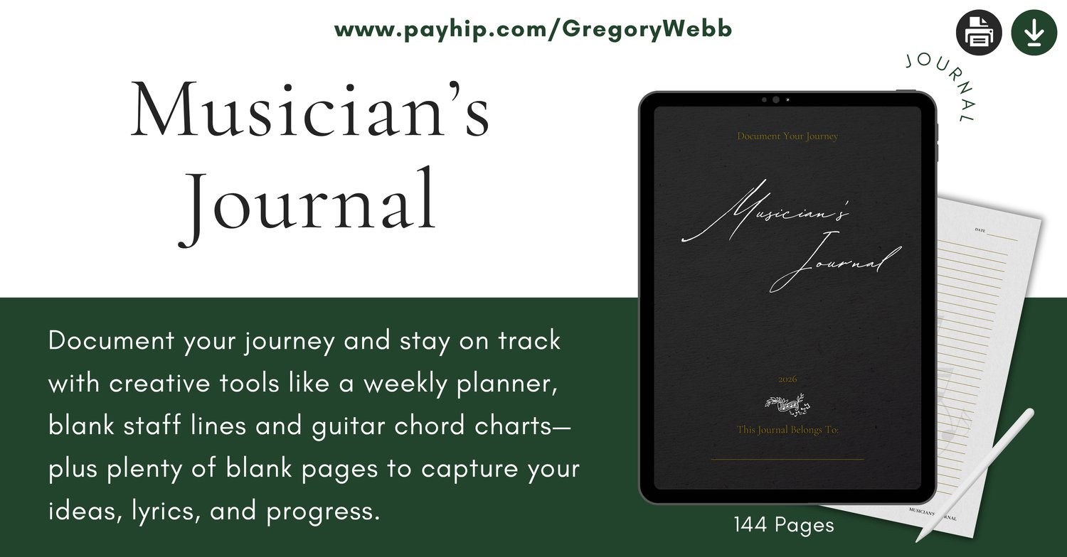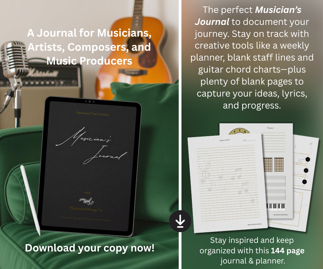 📝 The perfect Musician’s Journal to document your journey. Stay on track with creative tools like a weekly planner, blank staff lines, and guitar chord charts—plus plenty of blank pages for ideas, lyrics, and progress. Stay inspired and organized with this 144-page journal and planner.
