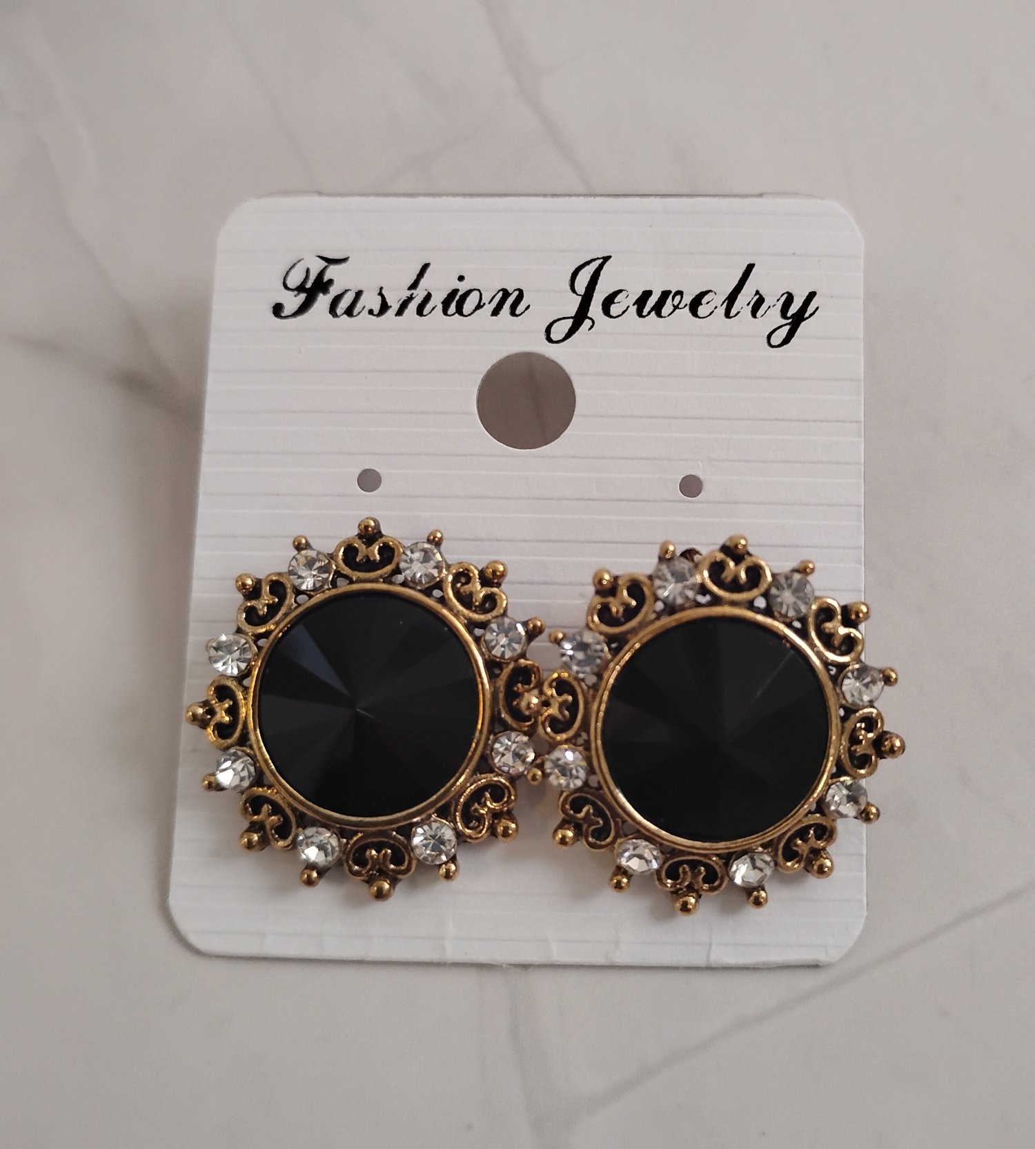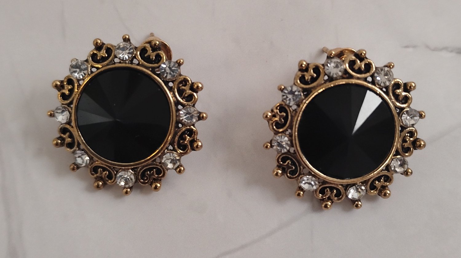 Black and Gold Stud Cubic Ziconia Earrings