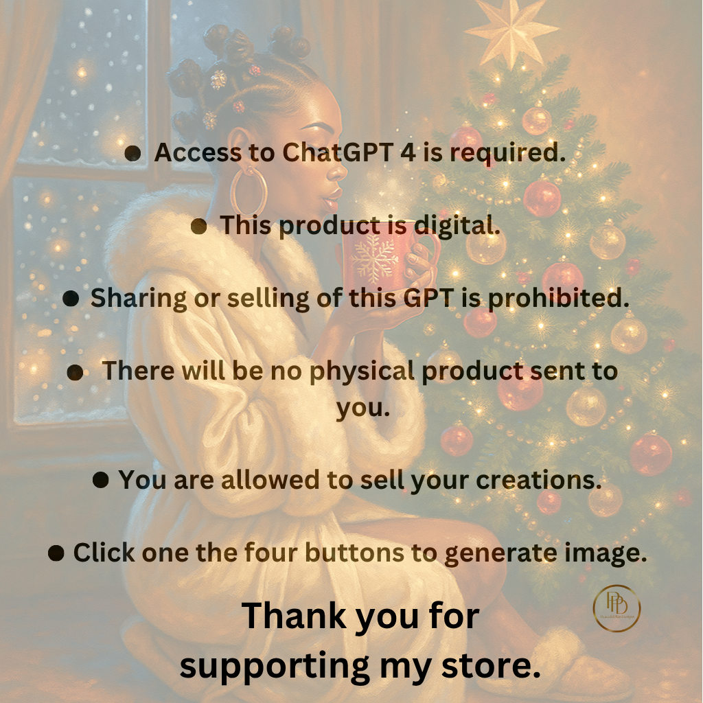 The Holiday Glam Illustrations GPT is a custom AI prompt generator designed to create unique, hyper-realistic holiday art scenes featuring fly African American women in urban hood Christmas outfits and modern glam hairstyles.