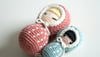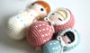 The Swaddle Babies Pattern is a 3-in-1 pattern that includes three different sizes: Baby doll (small), Original doll (medium), and Tall doll (large)! These adorable little figures are shaped like Japanese kokeshi dolls with no arms or legs. They come with dress-up accessories, including cute hoods, pixie bonnet hats, and headbands. This is a no-sew design, meaning everything is worked up with crochet methods only! For instance, the head and body of the doll is worked in one piece. This is a great stashbuster project for using up scrap yarn and is also fun to customize with different color combinations. Both girls and boys will enjoy this unisex/gender neutral toy. They make lovely birthday presents for children, holiday or Christmas gifts, kids party favors, and more.