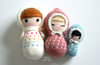 The PDF pattern file includes complete written instructions for all three doll sizes and accessories, photo references, and links to video tutorials to help guide the crochet process.
