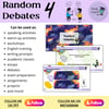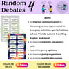 This product includes 40 random debate topics which can be used as speaking or writing prompts for ELA and ESL learners. It includes topics such as: everyday activities, sports, hobbies, school, friends, culture, travelling, English, and more!
