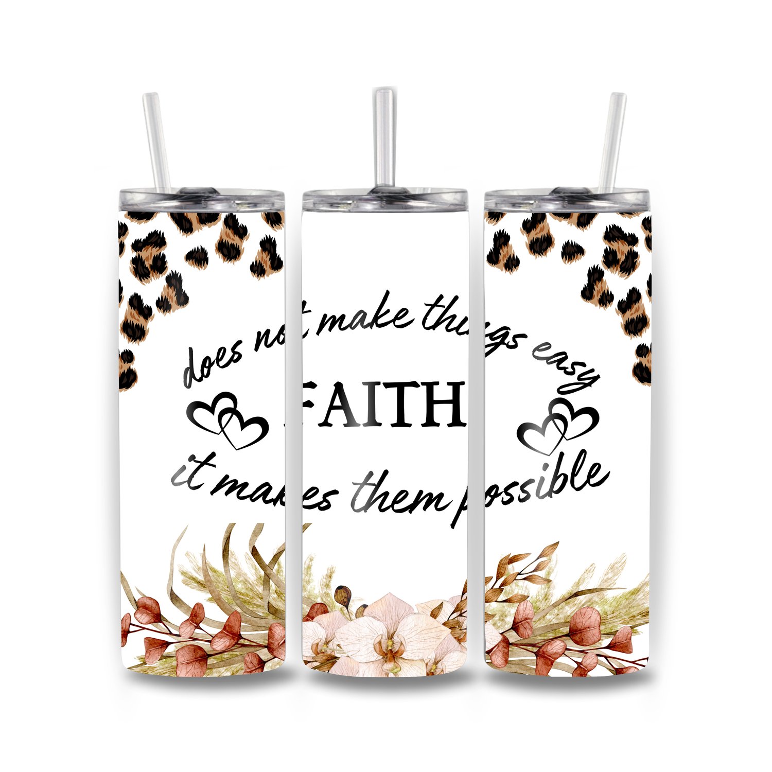 Bring your faith and style together with this beautiful 20oz tumbler! Designed with a chic leopard print, soft neutral florals, and the uplifting quote: