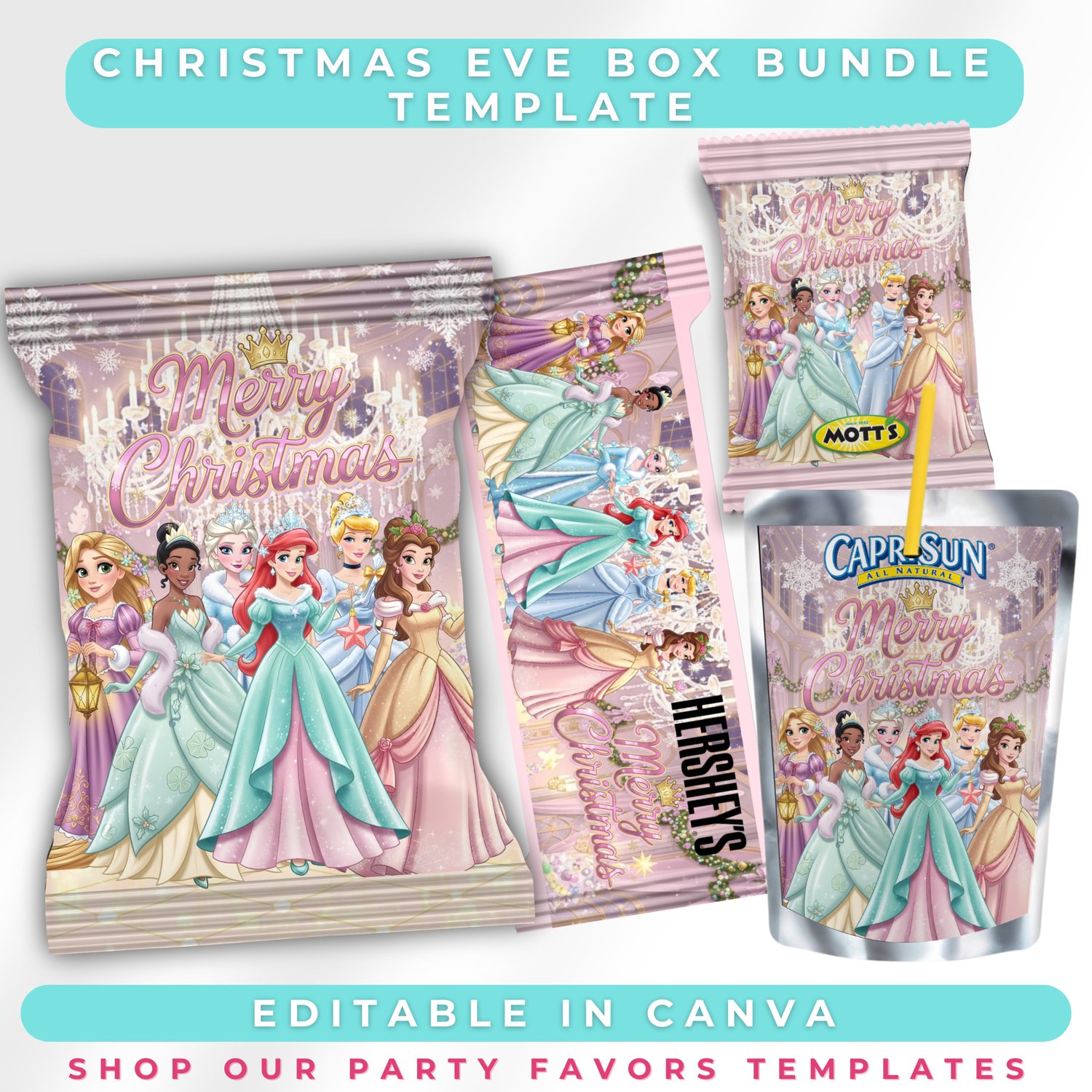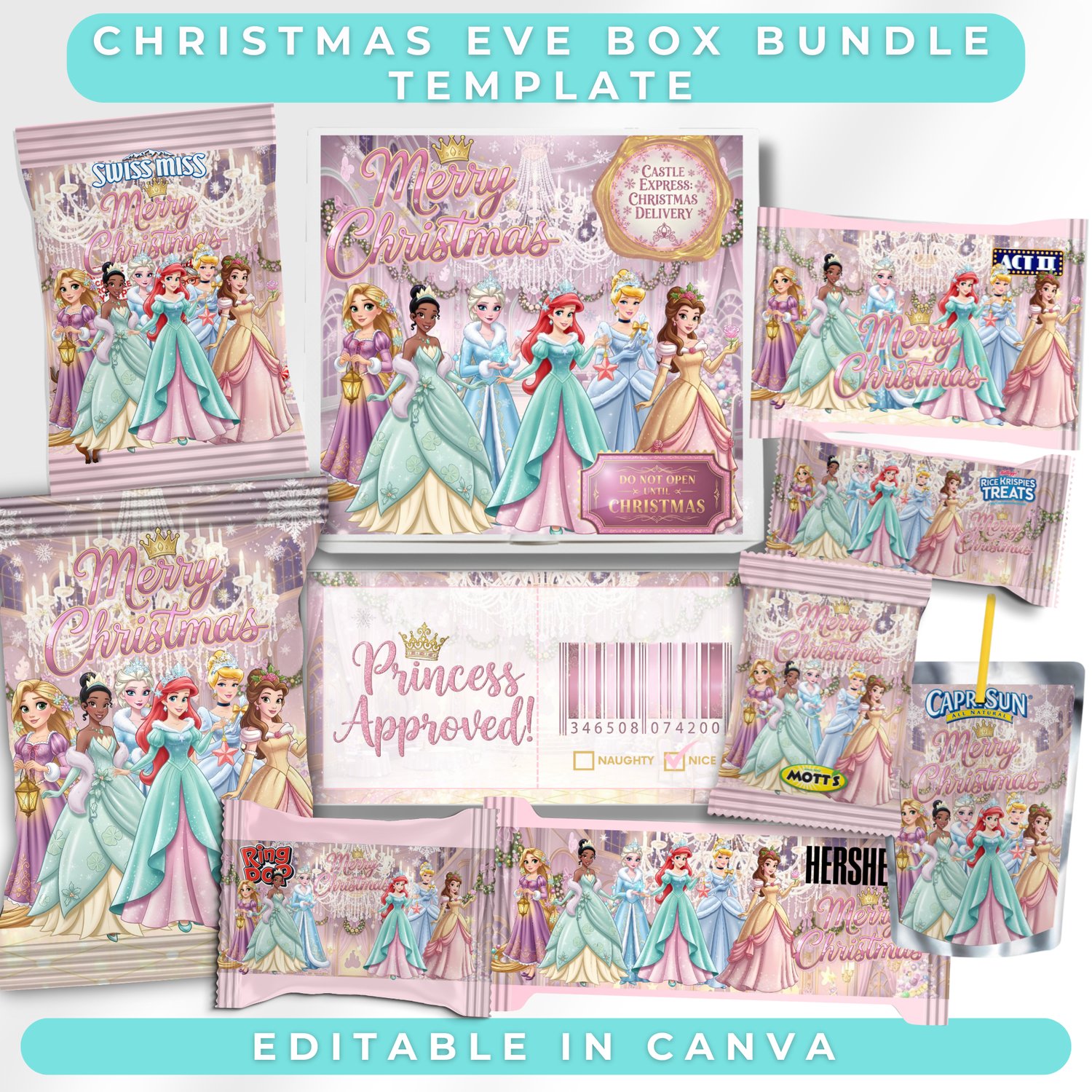 Princess Christmas Eve Box Bundle | Editable Canva Templates | Snack Wrappers | Printable Holiday Set | Grinchmas eve Gift Box