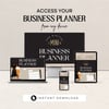 This 52 page digital download seamlessly blends functionality with flexibility. Crafted to perfection, it includes sections for Your Vision and Goals, Yearly Goal Setting, Daily Planner, Week in Review, Financial Trackers, Client Contacts, Marketing Ideas Log, Project Brainstorm, and Top Tips for Entrepreneurs.