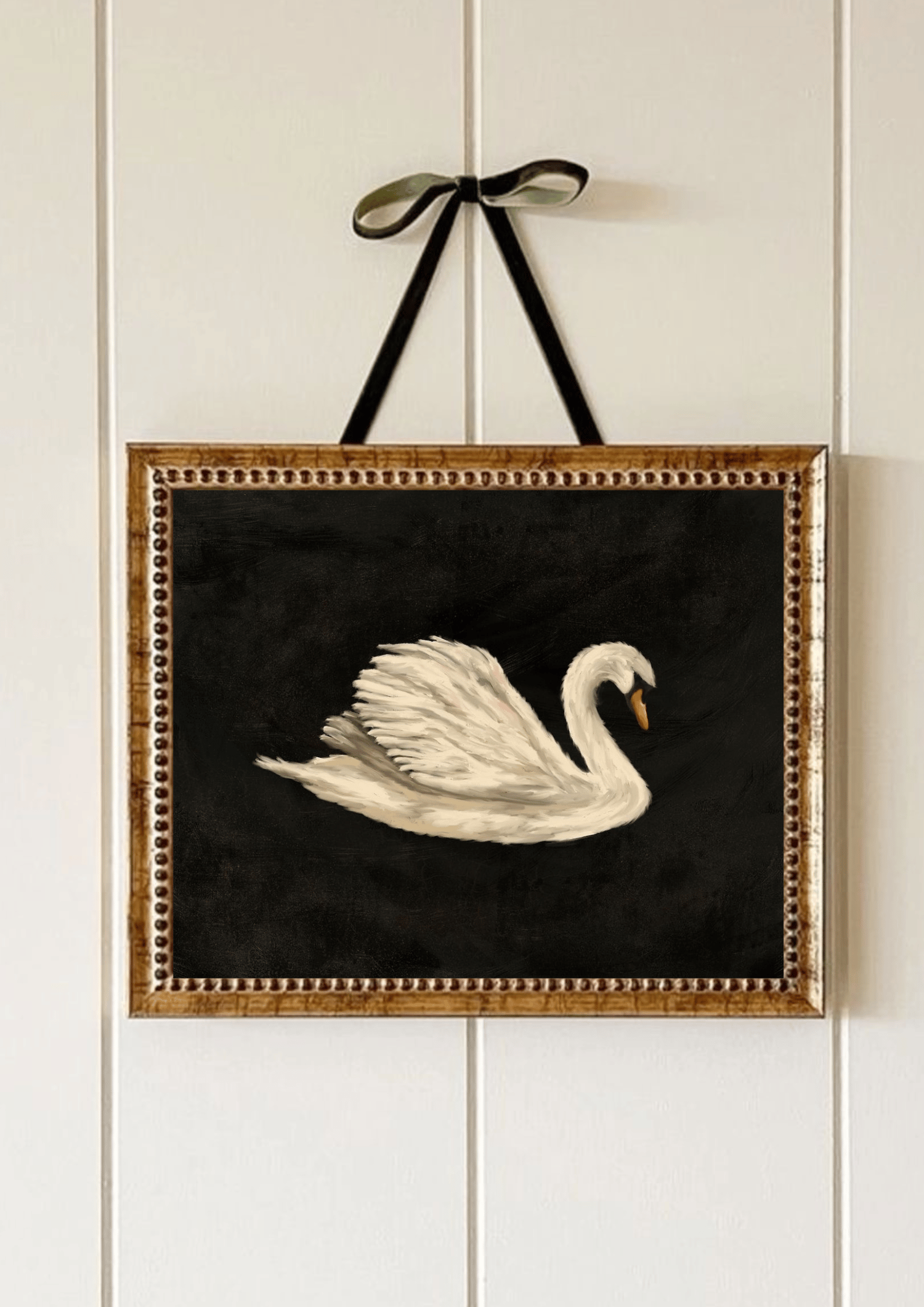 This vintage-inspired poster showcases the timeless grace of a swan gliding across a serene lake. With delicate, muted tones and intricate detailing, the design evokes a sense of tranquility and classic charm. Perfect for adding a touch of sophistication and nostalgia to any space, this piece celebrates the beauty of nature in its most elegant form.