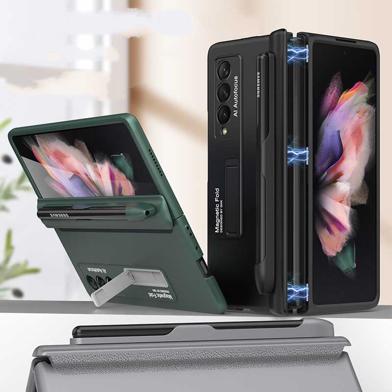 Full Protection Cover Samsung Galaxy Z Fold 3 Case Cover Hinge Magnetic S Pen Slot Anti-Fall