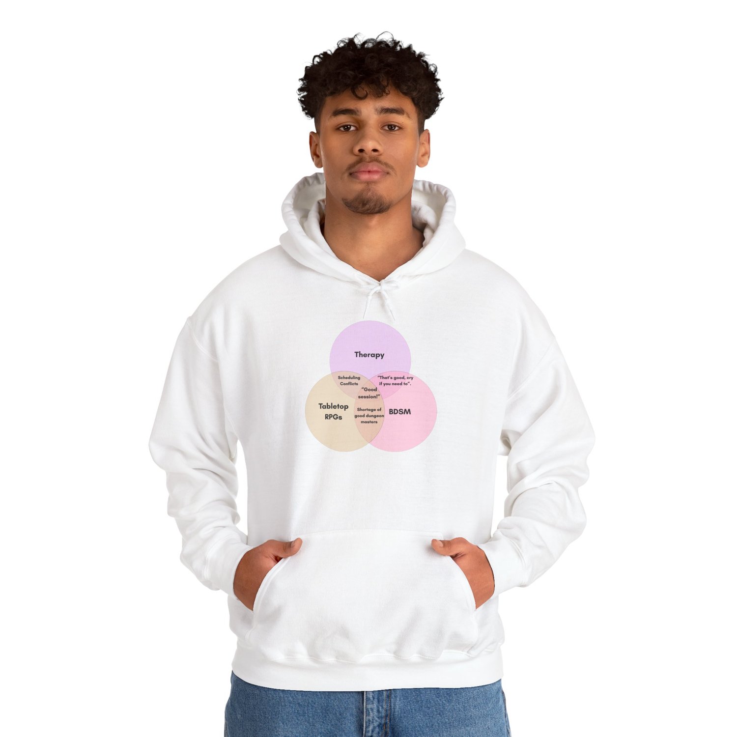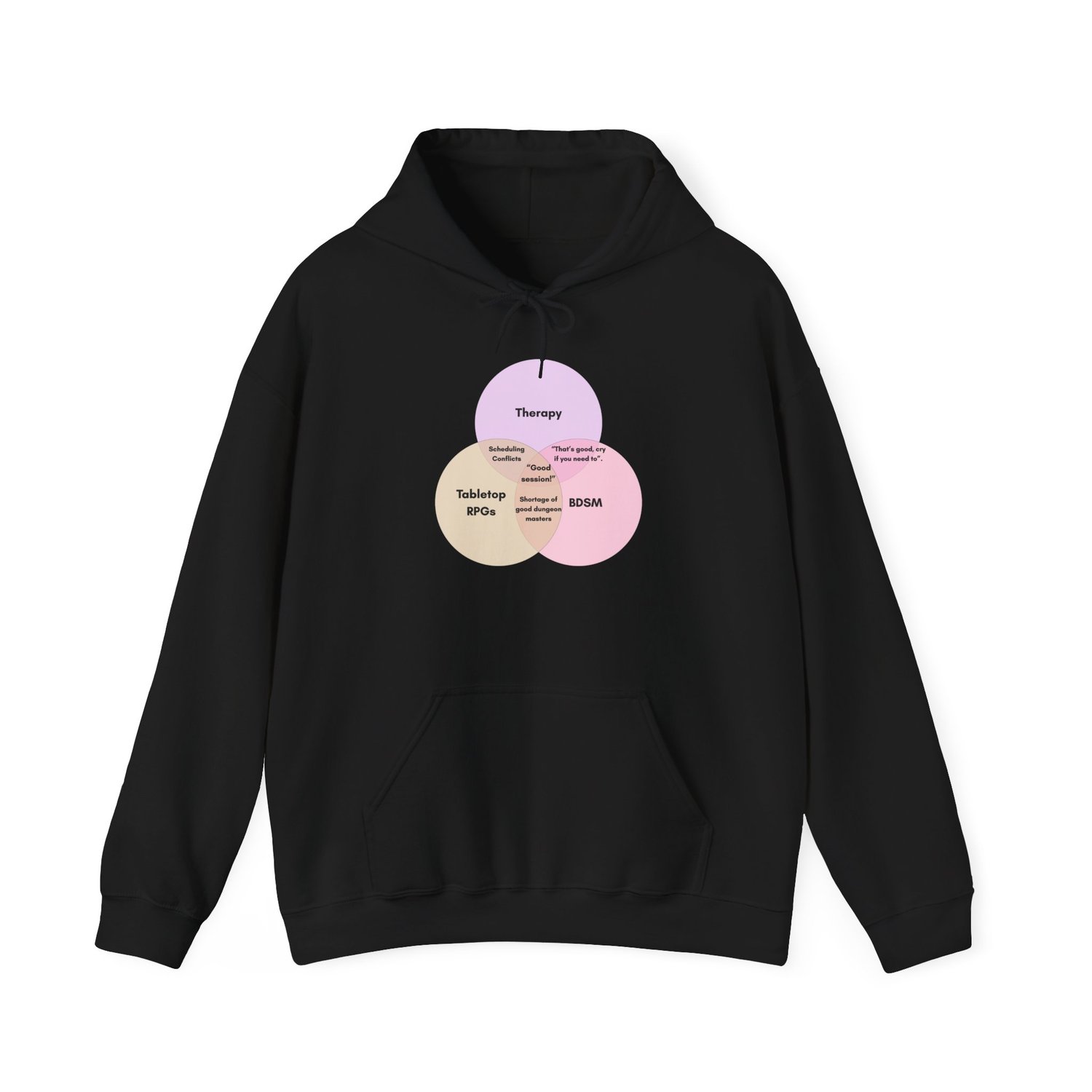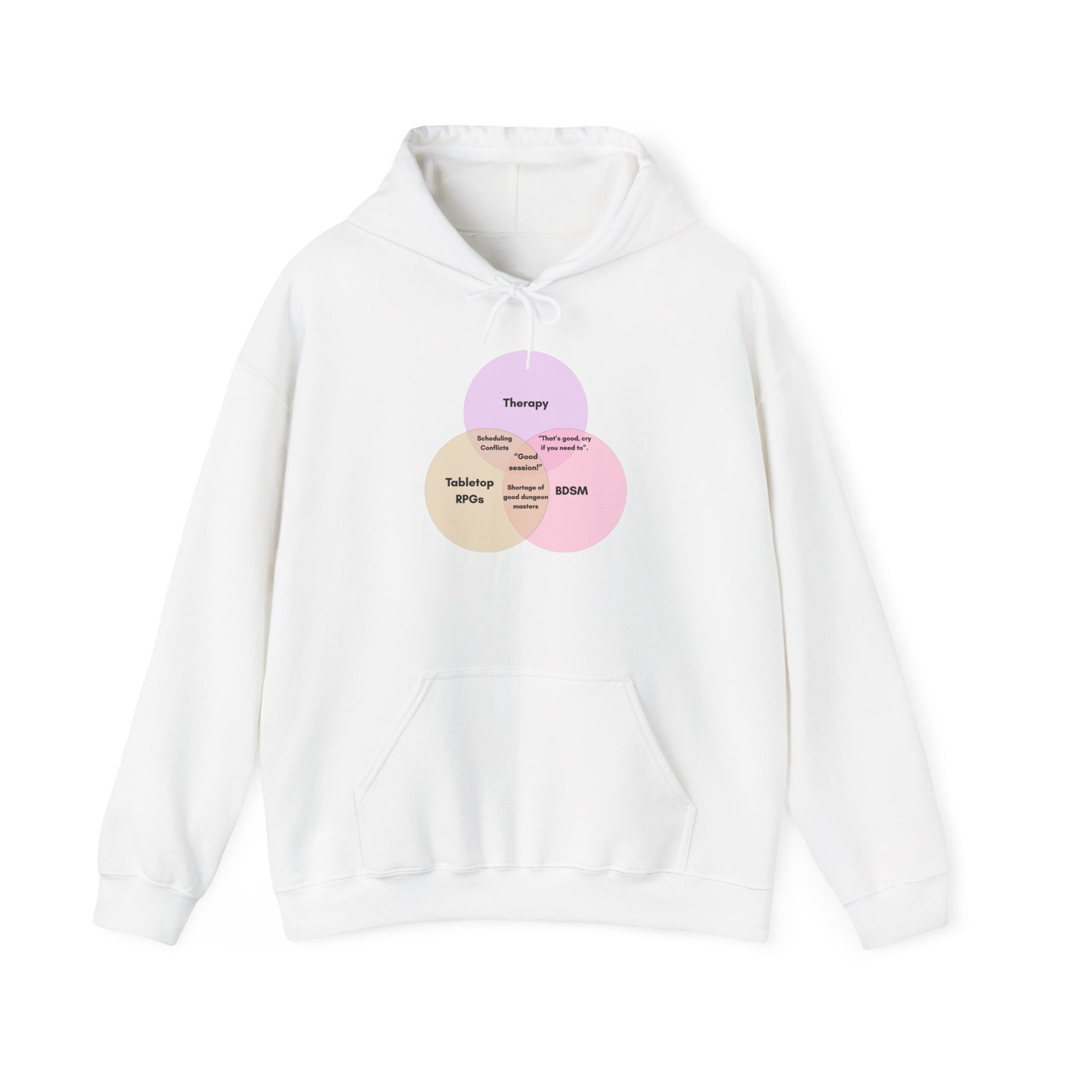 Therapy, Tabletop RPGs, BDSM Venn Diagram Hoodie (Physical Shipped Item)
