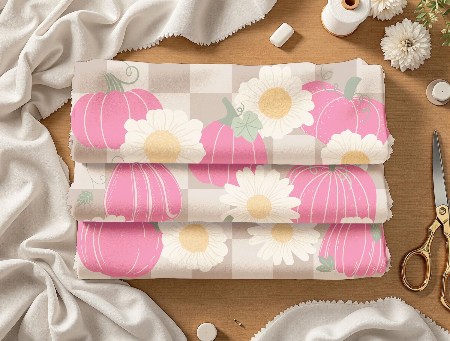 Keywords for SEO: pink pumpkin seamless pattern, fall floral digital paper, autumn pumpkin daisy pattern, girly fall seamless design, boutique fall pattern download, pumpkin flower seamless background, pink fall fabric design, cute autumn pumpkin pattern