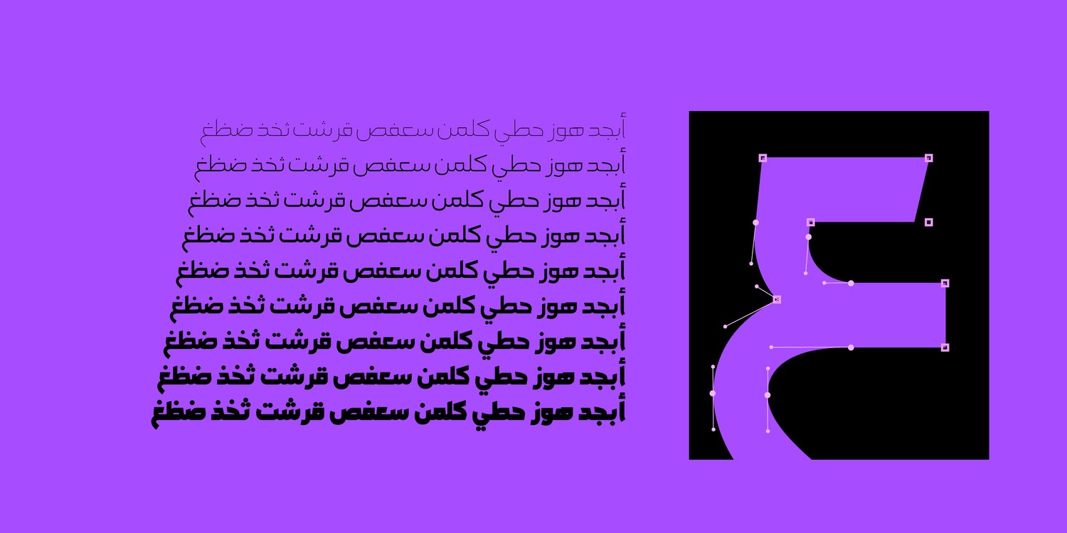 AQEEQ Display Sans, the modern version. Inspired by Arabic fonts, modern and flexible, for titles and prints, featuring elongated letters and multiple languages Latin, Arabic and their derivatives.