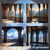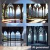 A set of AI-generated backgrounds featuring a beautiful mountain view from balconies in a gothic design. The set contains 8 backgrounds with dimensions of 2800x2600 pixels.