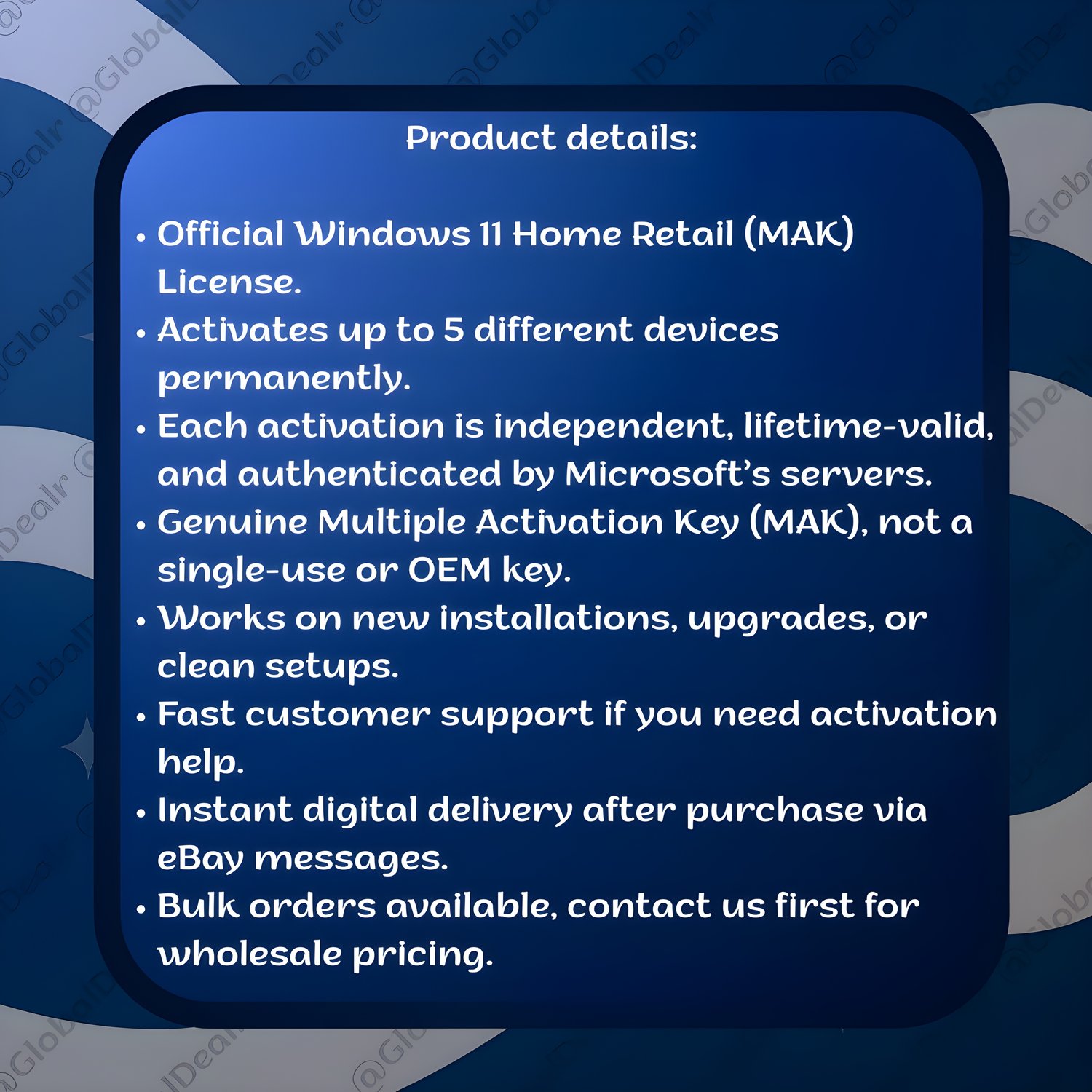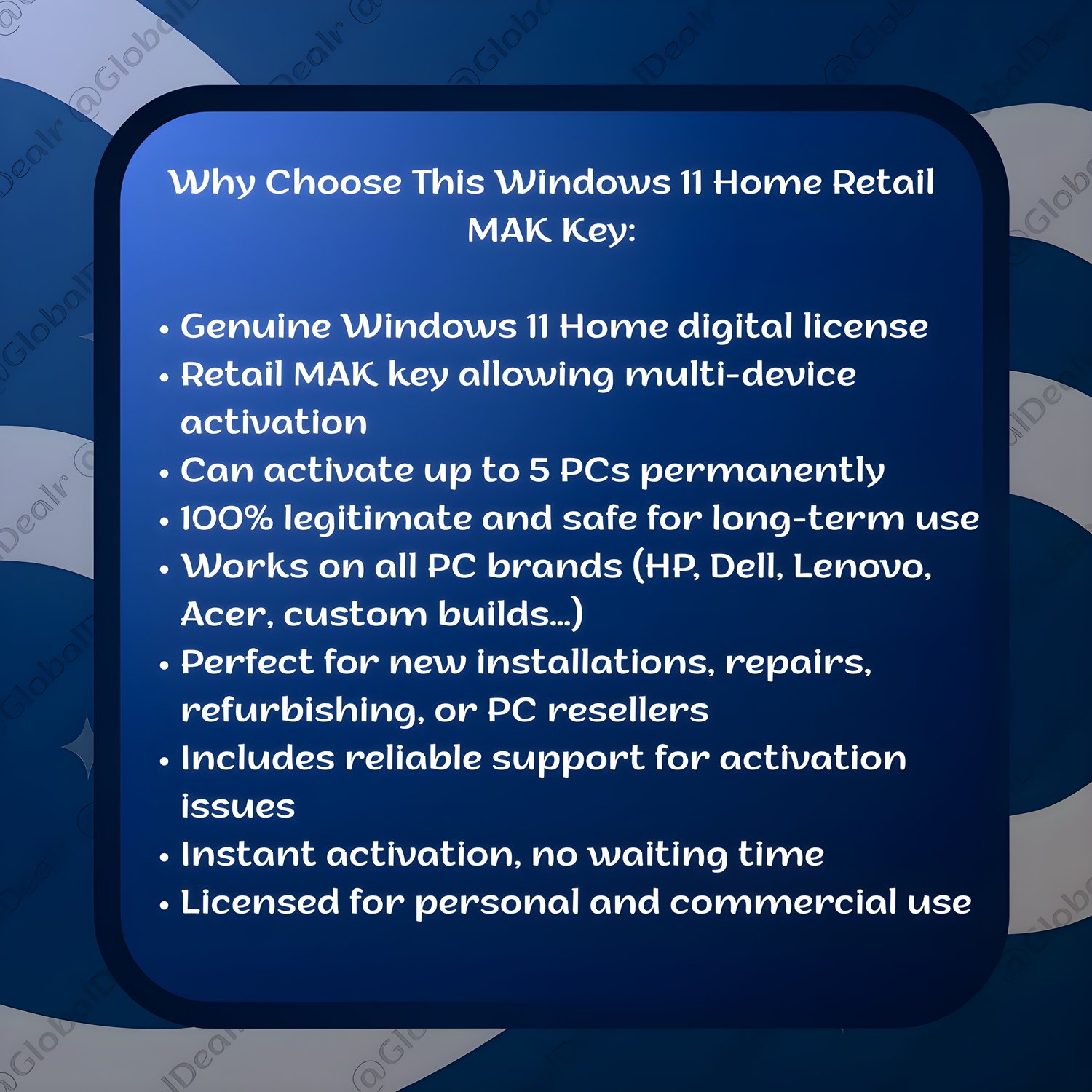 - Official Windows 11 Home Retail (MAK) License.