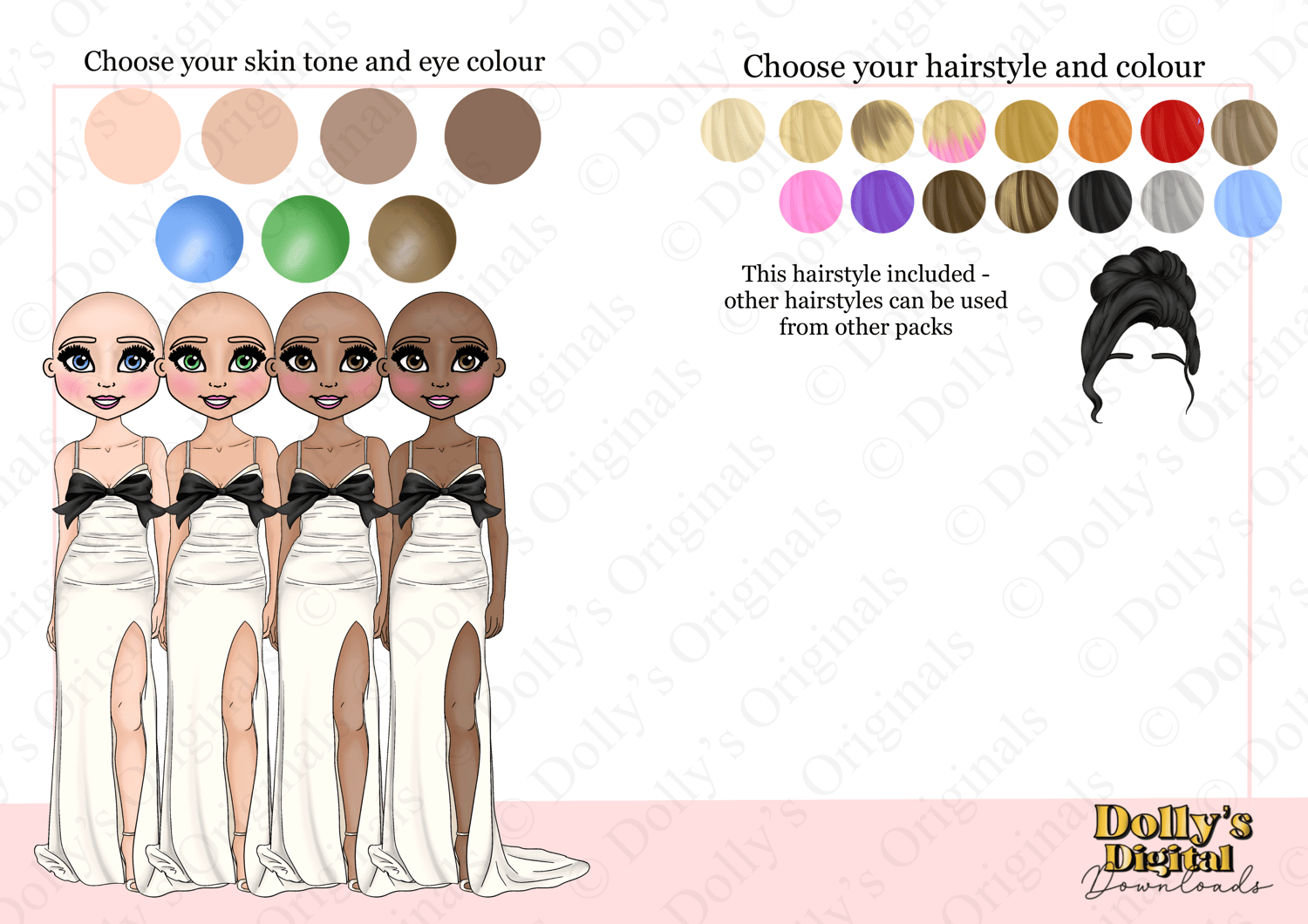 Instant digital download of our Cream and Black Dress Dolly Character Bundle PNG (32 PNG’s)