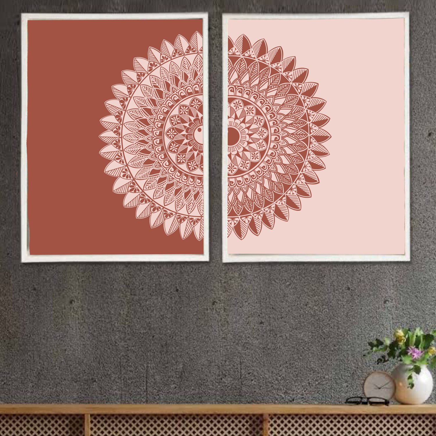 Neutral color abstract Mandala set of 2 wall arts available for digital download.