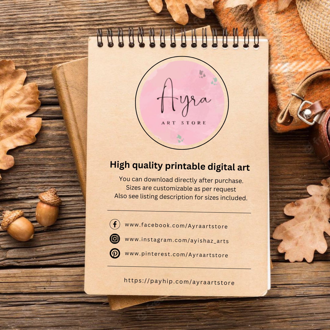 You will receive a 2 zipped folder each with 4 high quality JPG digital files for your art printable.