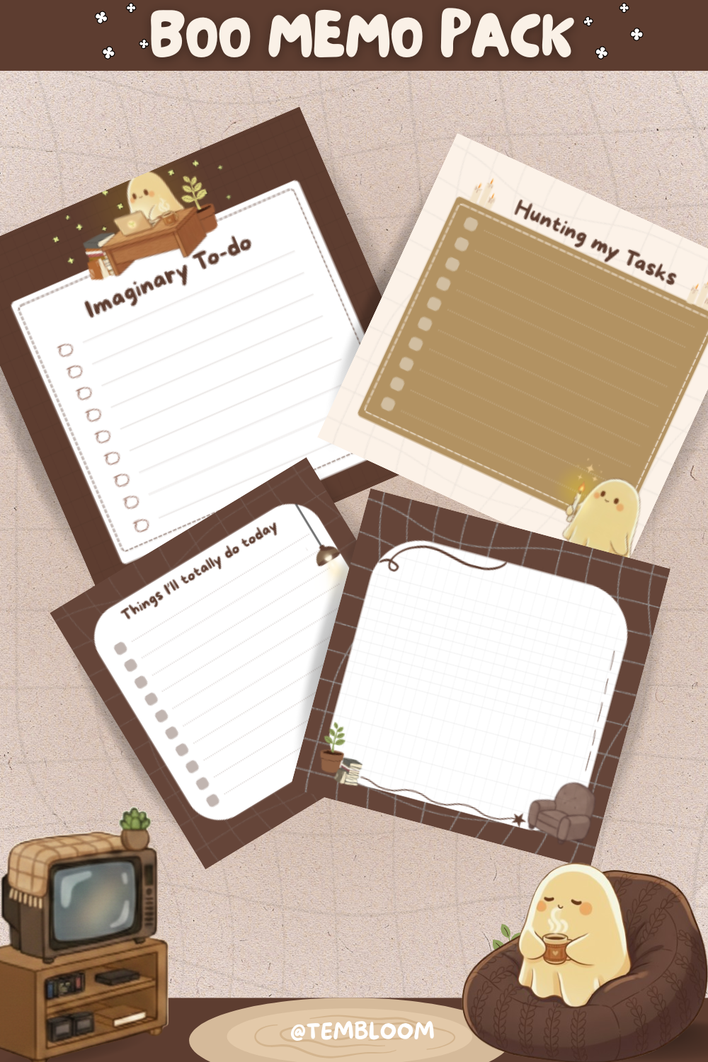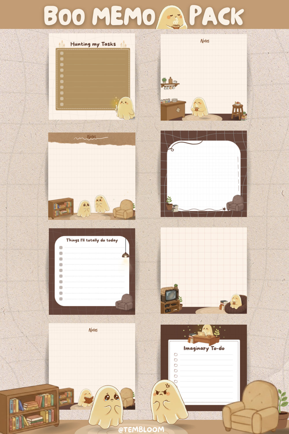 Featuring 8 adorable ghost-themed memos, perfect for your notes, to-dos, and reminders.