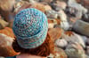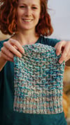 Die gerippte Mütze, in Runden gestrickt, wird von unten nach oben mit einem dehnbaren Maschenanschlag gearbeitet.