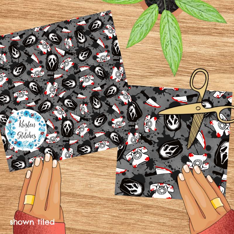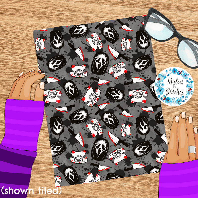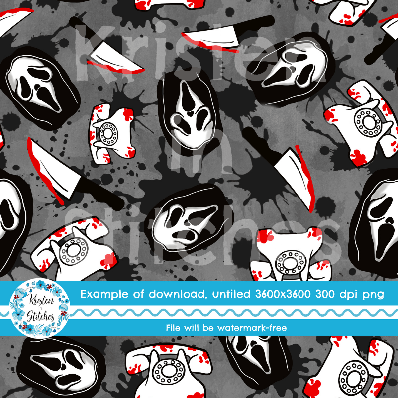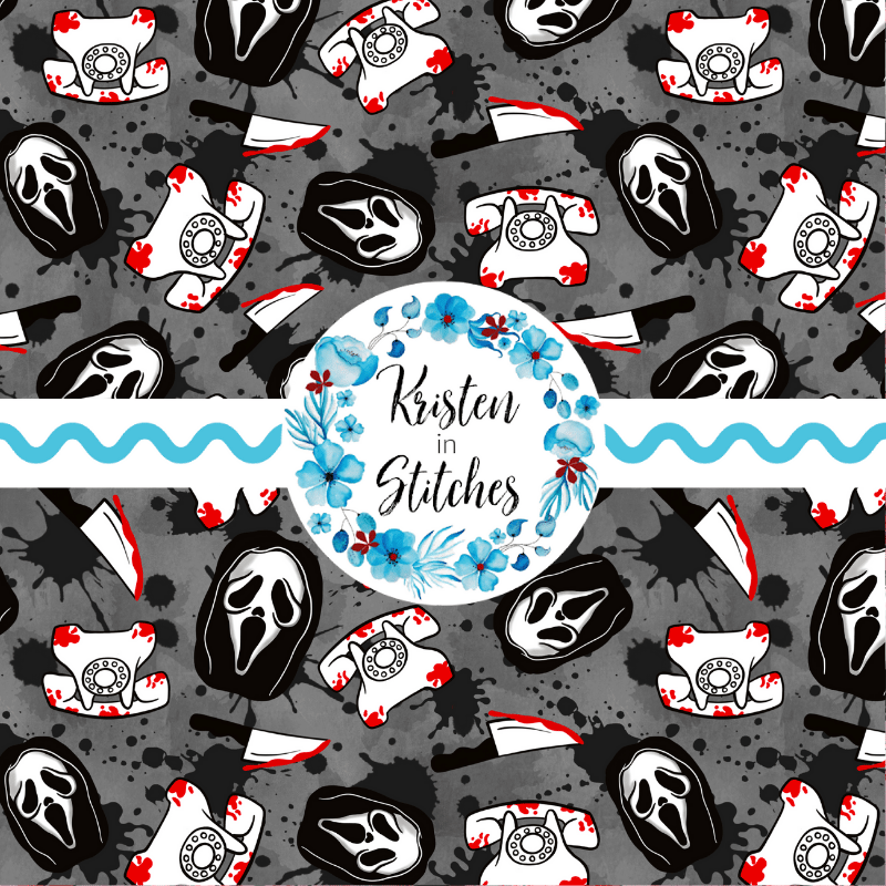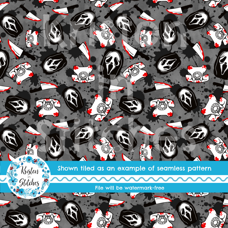 No, you hang up. Horror slasher face masks, bloody knives and telephones with blood splatter.