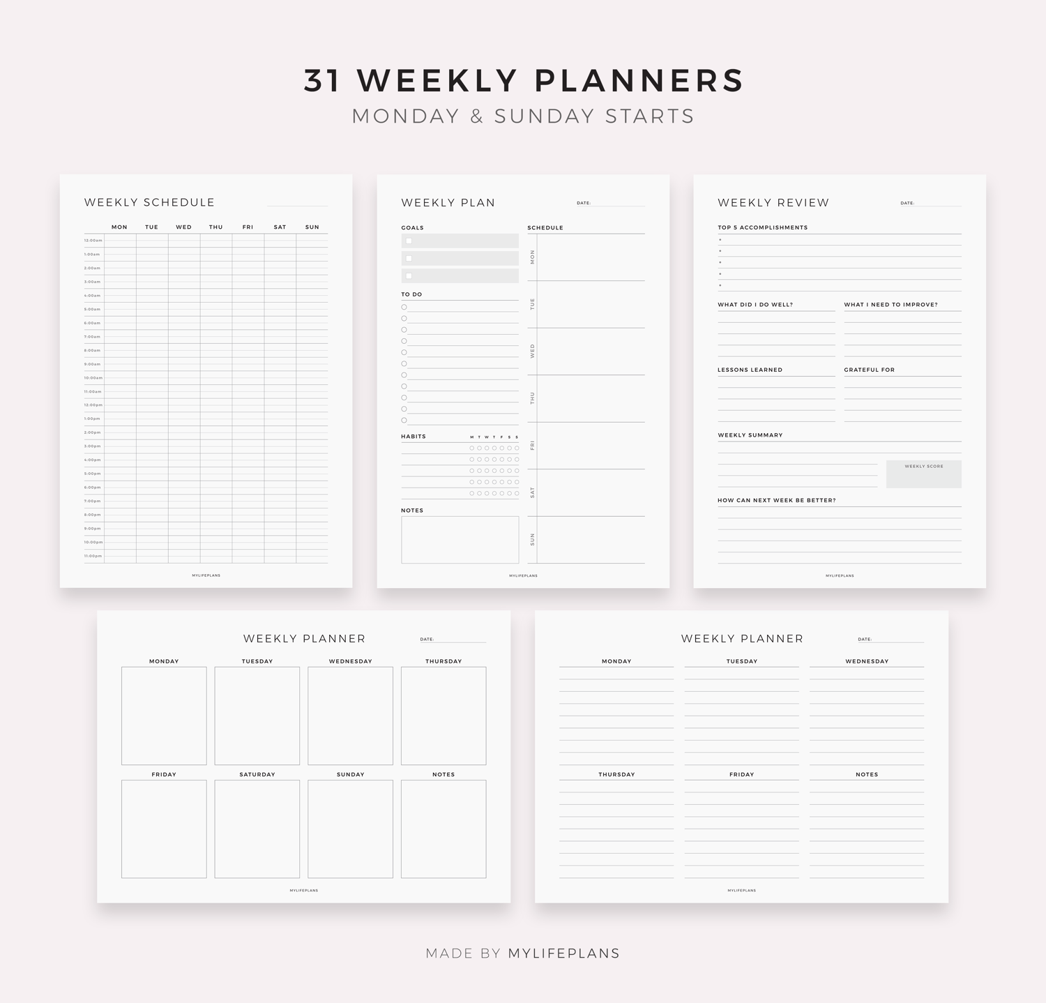 • 31 WeeklyPlanners
