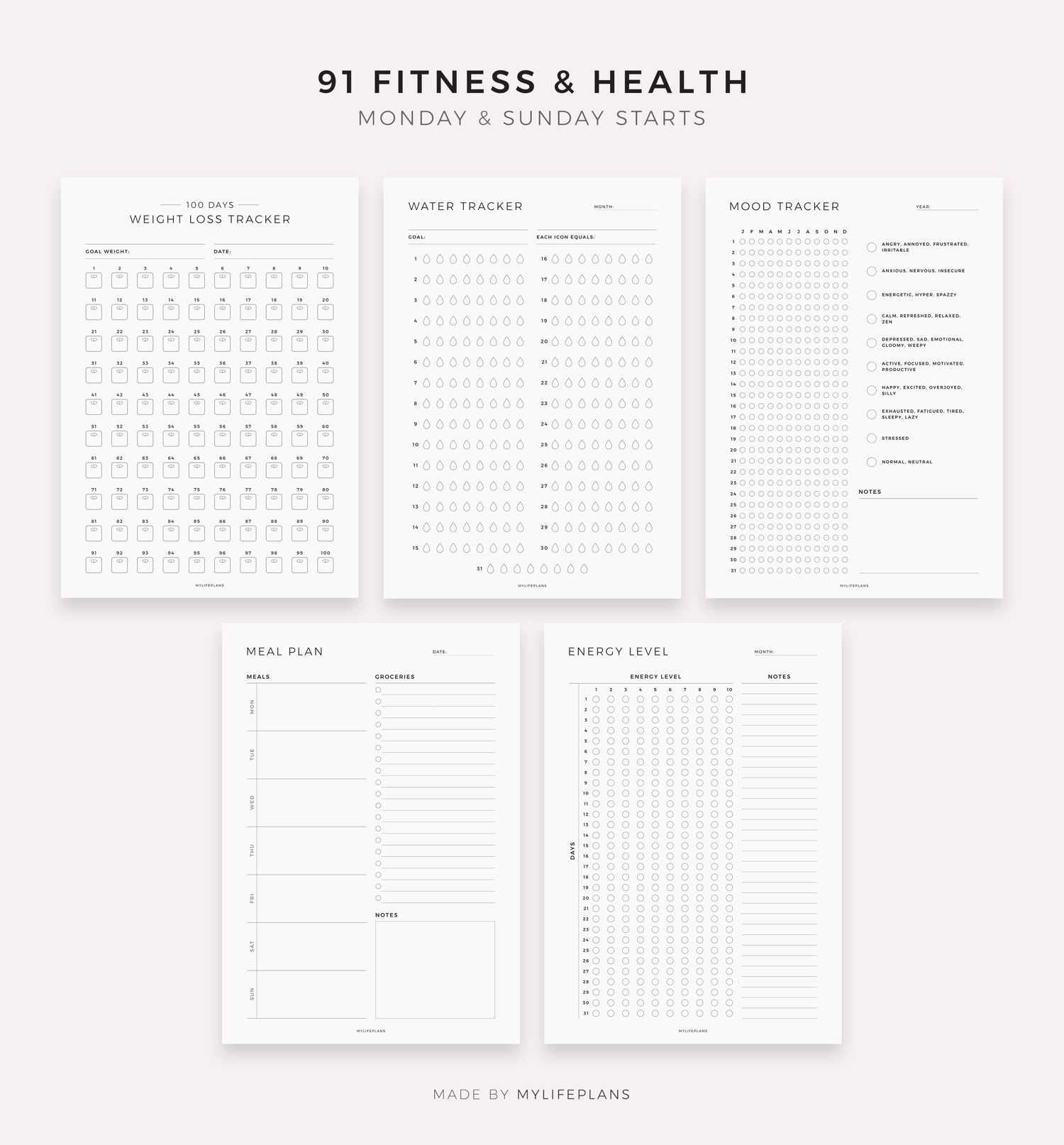 • 90 Fitness, Diet & Health Planners