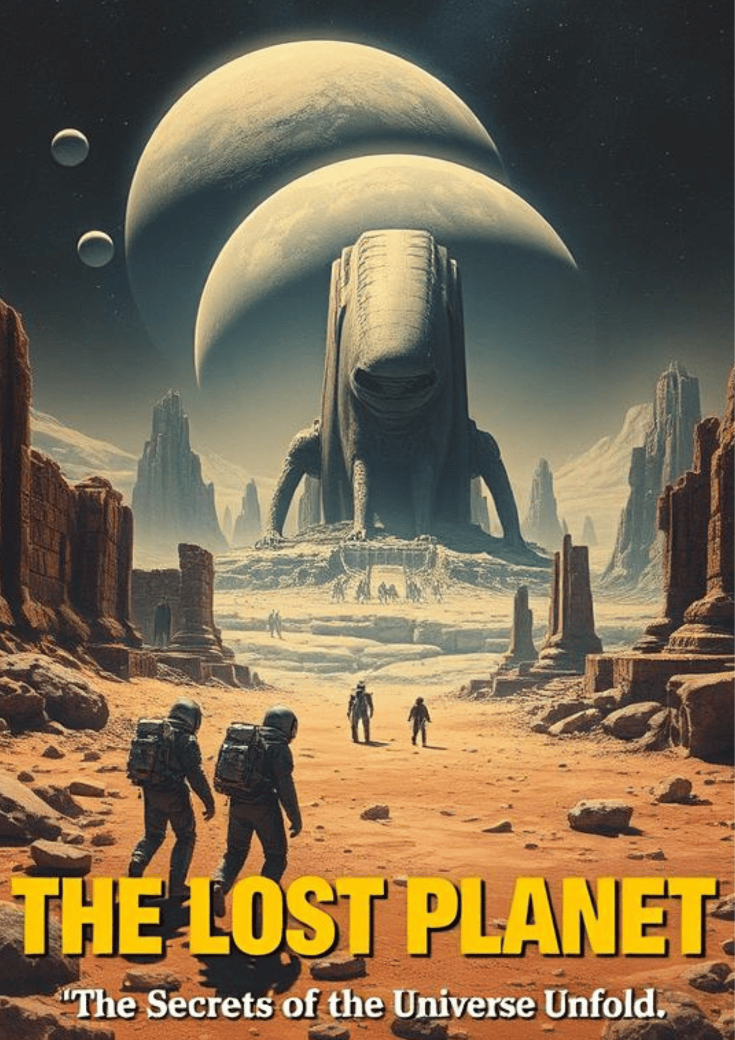 Embark on an unforgettable adventure with this 1950s retro-style exploration poster. Astronauts discover an ancient alien structure on a desolate planet, surrounded by strange landscapes and alien life. The warm, earthy tones and futuristic designs bring this lost world to life, adding a unique touch to any space.