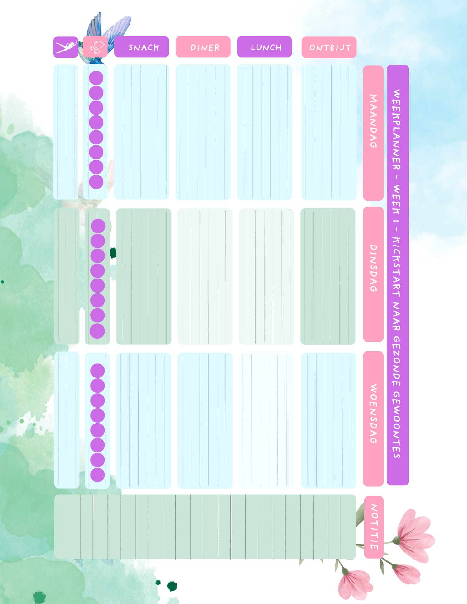 🌿 Dagelijkse invulpagina’s voor eten, water, energie & beweging