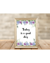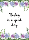 Beautiful Watercolor Flower Frame with purple and blue flowers with life quotes, motivational quote: "Today is a good day".