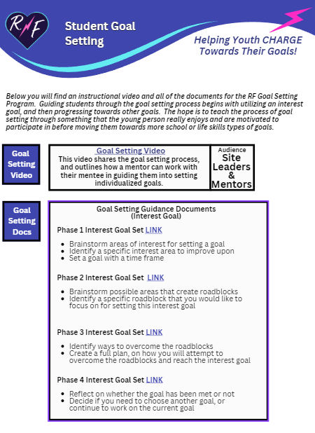 - An Instructional Video outlining how to guide youth through the process of goal setting