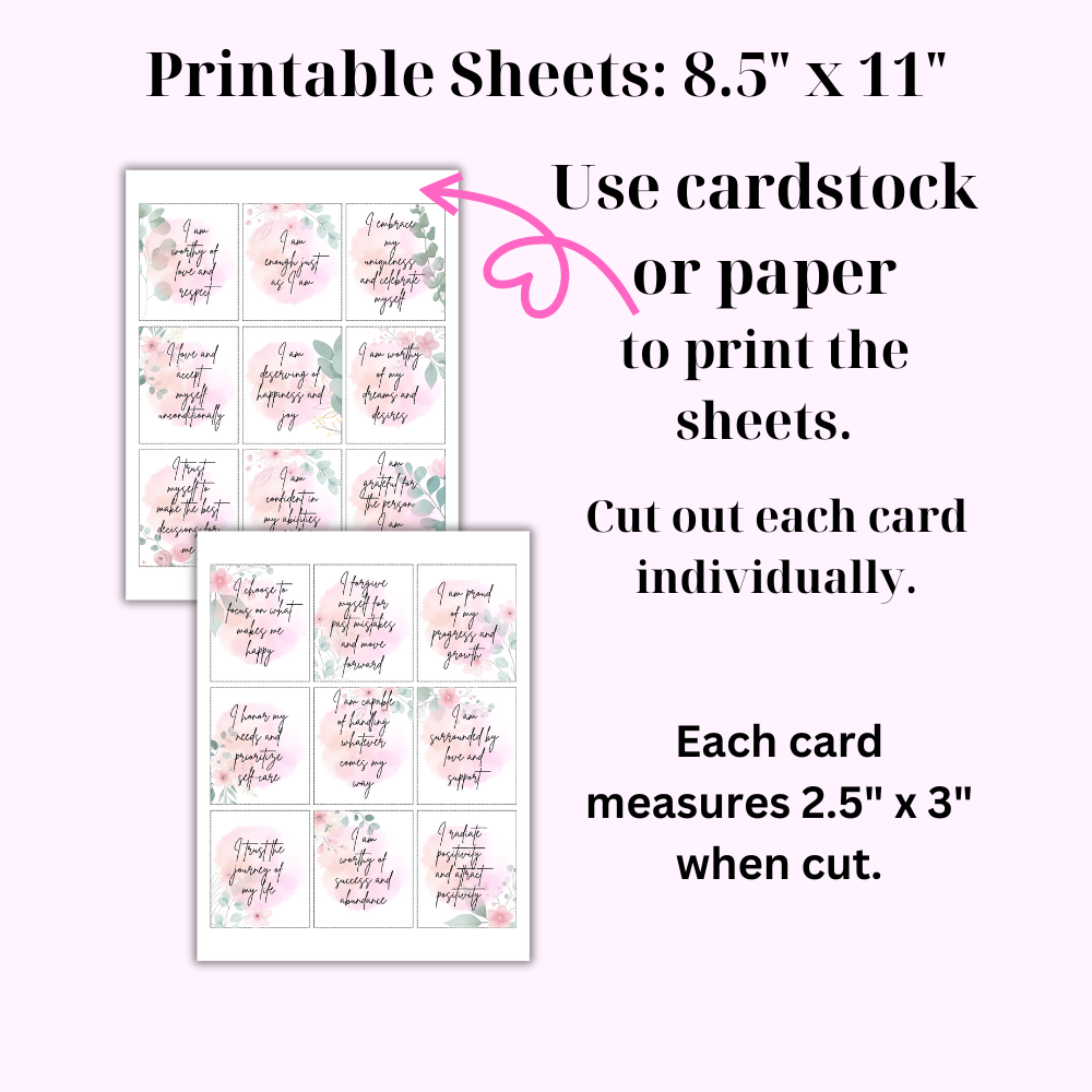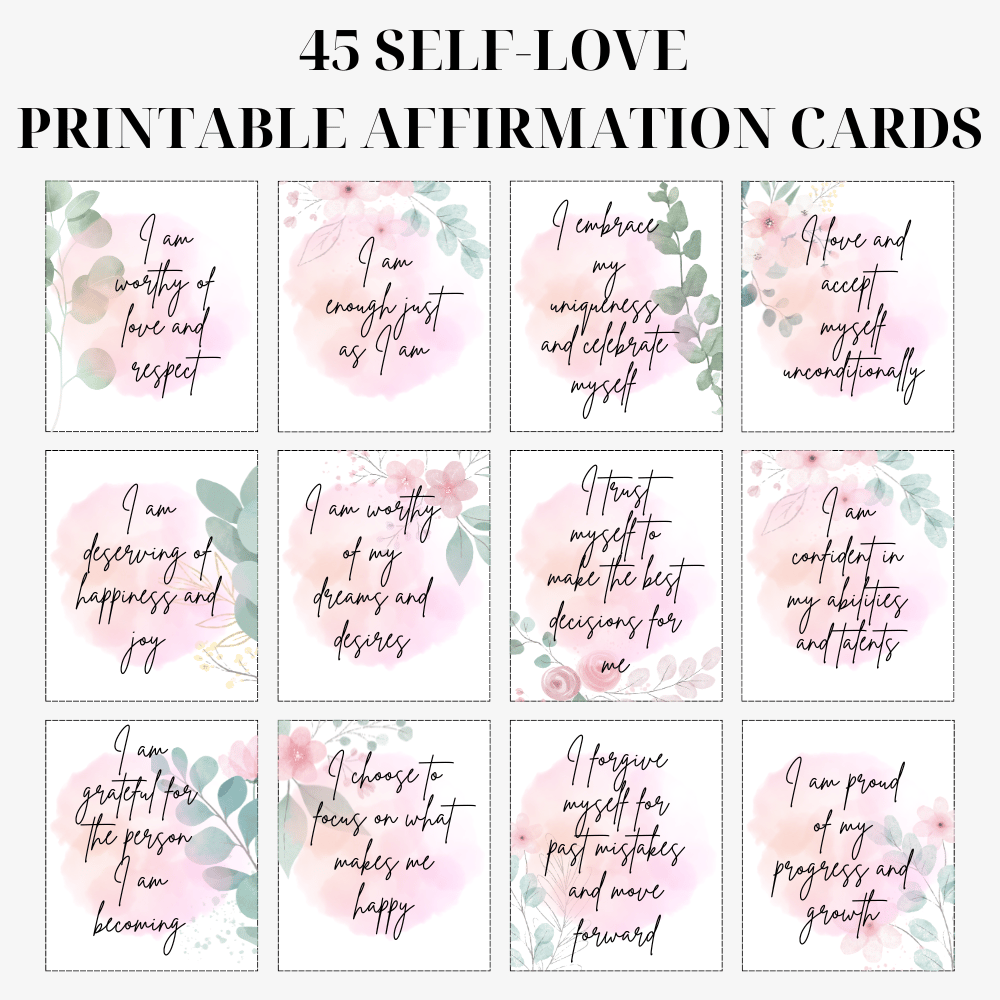 Hey there! Looking for positive affirmation cards to help you manifest your goals and focus on self-care? Look no further! Our set of 45 self-love and self-care affirmation cards is perfect for boosting positivity and enhancing your daily routine. Download now and start your journey to a more confident, self-loving you! 😉