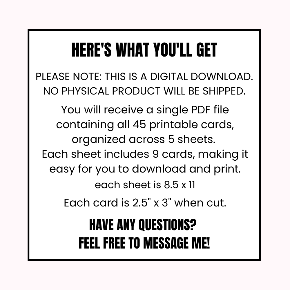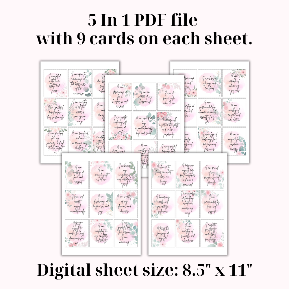 45 Positive Affirmation Card Deck | Vision Board Printables | Self Care & Law of Attraction Kit | Manifesting Digital Printables, Digital