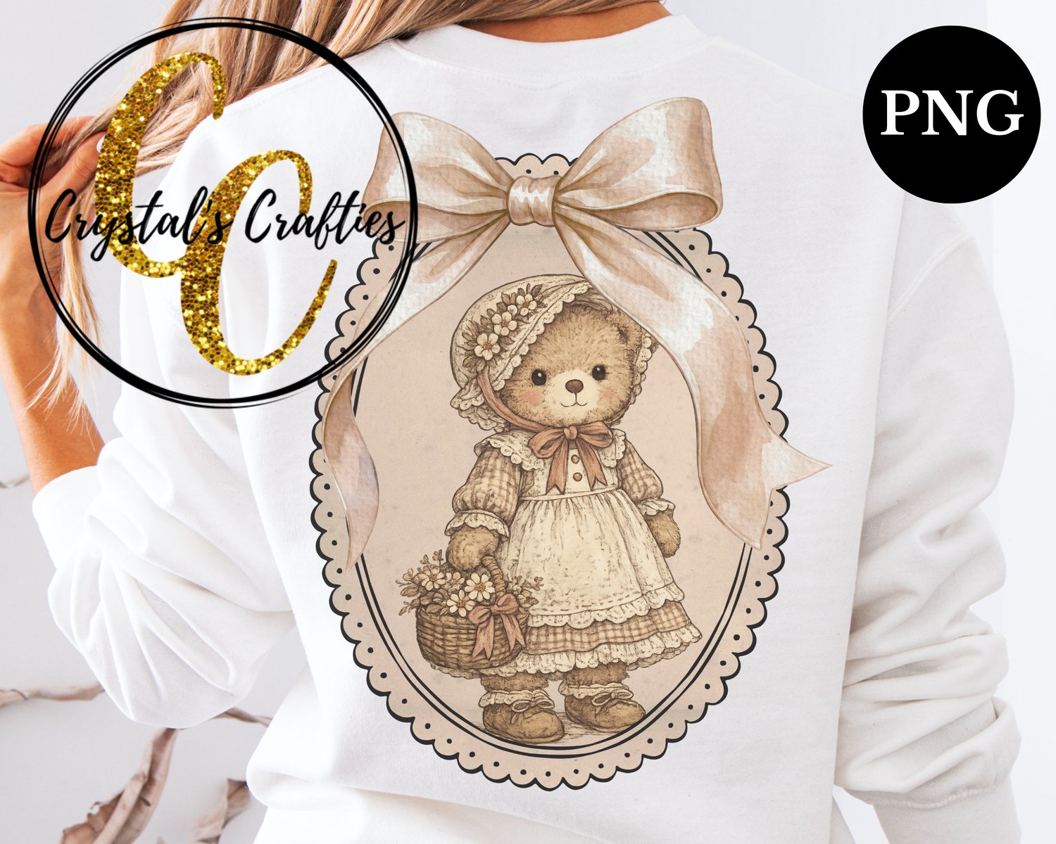 Create something sweet and timeless with this charming cottagecore teddy bear design — perfect for adding a touch of vintage magic to your next project!