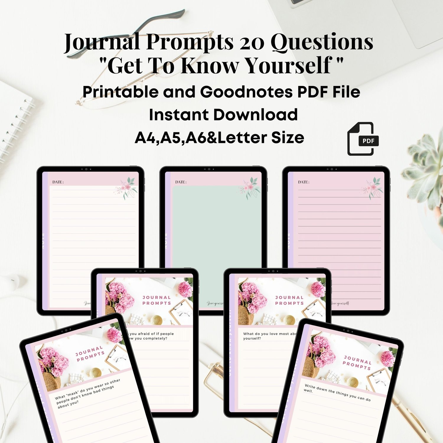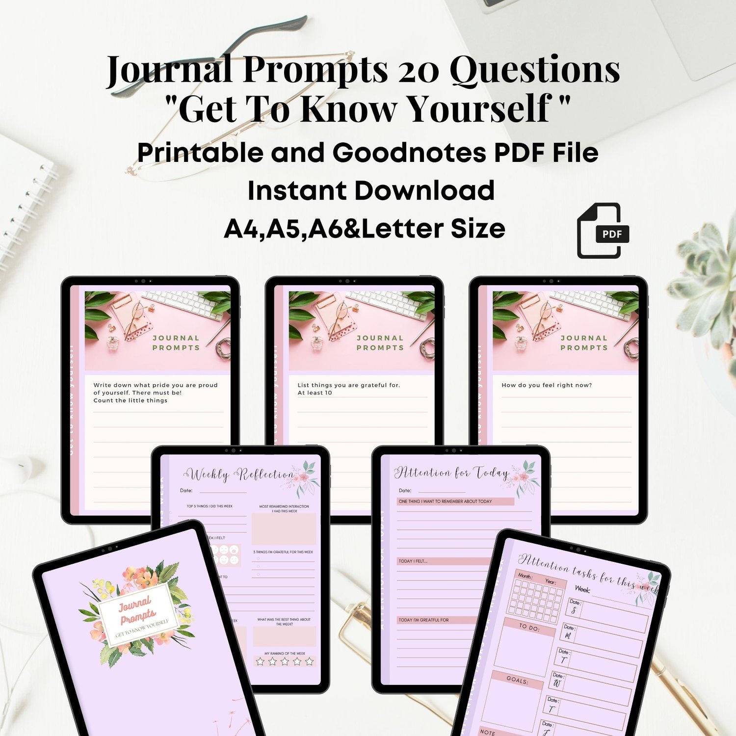 Journal Prompts 20 Questions "Get To Know Yourself " Include Attention For Today, Attention Tasks For This Week, Weekly Reflection [PDF Instant Download]