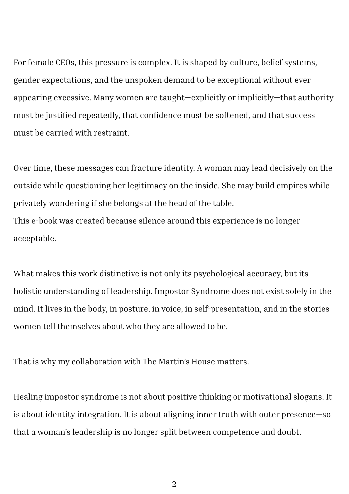 Impostor Syndrome does not visit those who lead lightly. It finds women who care—women who think critically, who feel deeply, who understand the weight of influence and the consequences of decisions. It appears most frequently not at the beginning of a career, but at its most consequential moments: when leadership expands, when visibility increases, when a woman steps into rooms she was never told were meant for her.