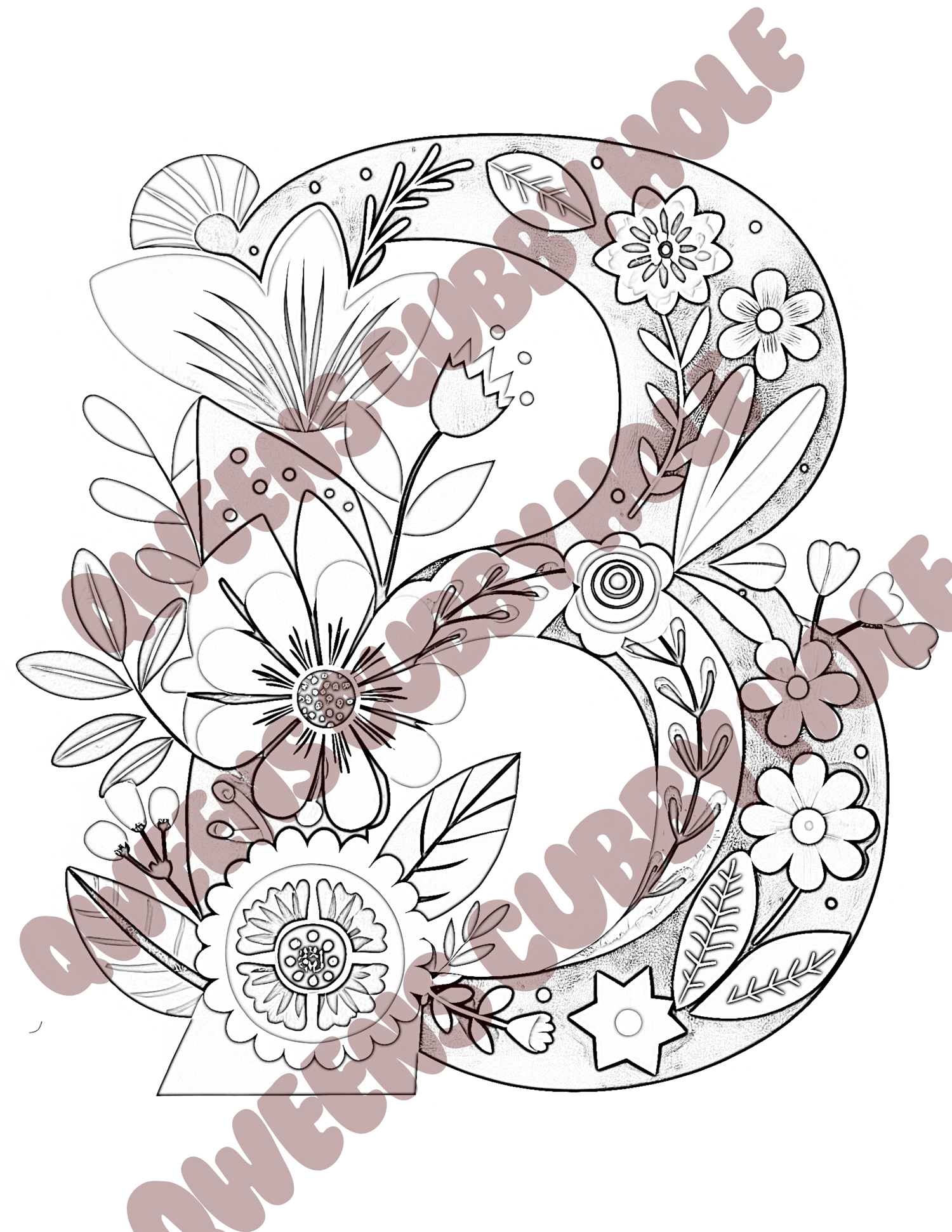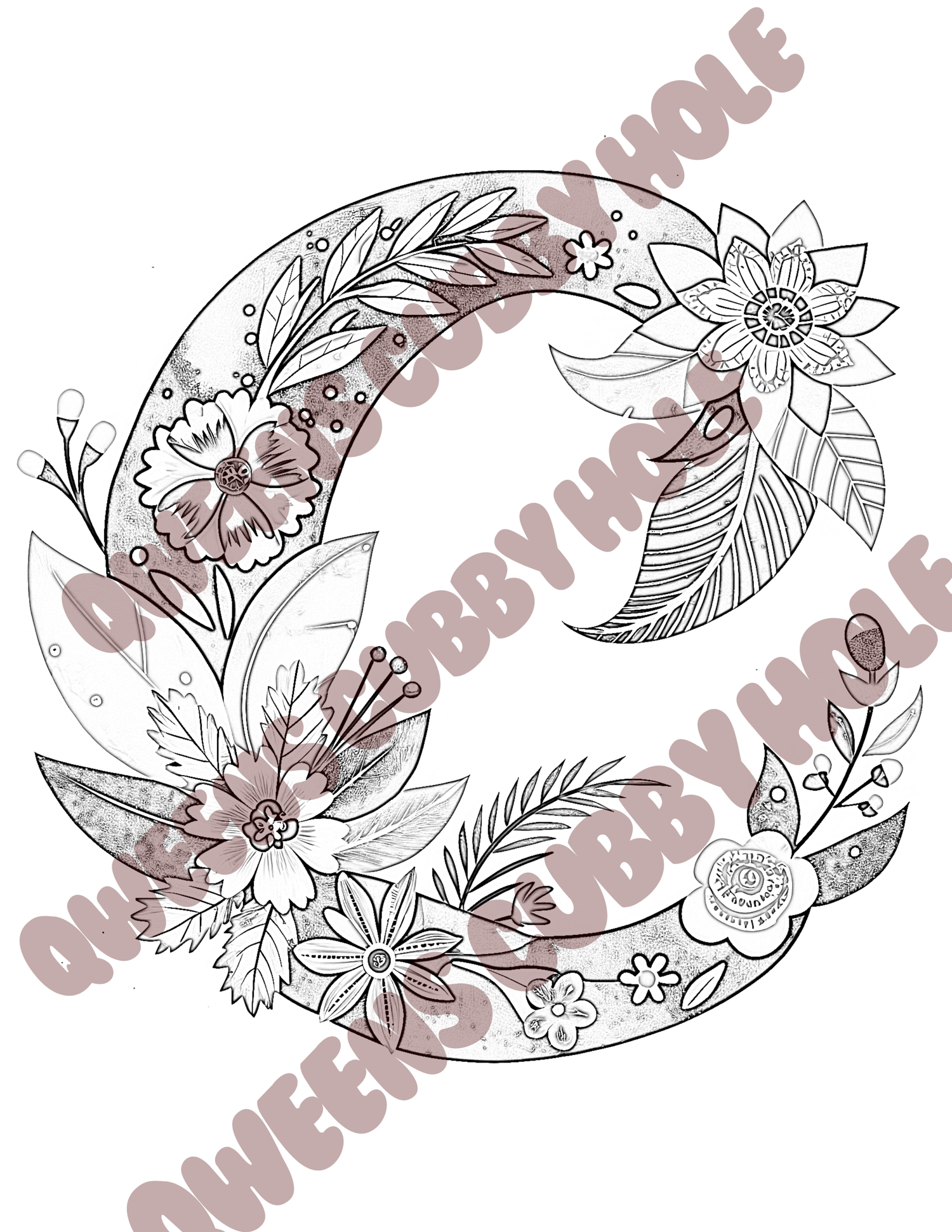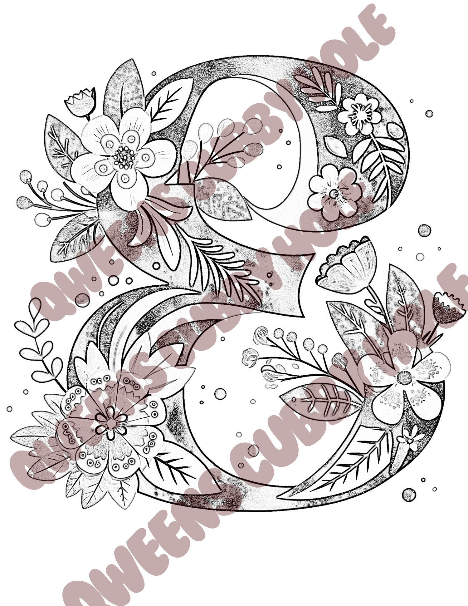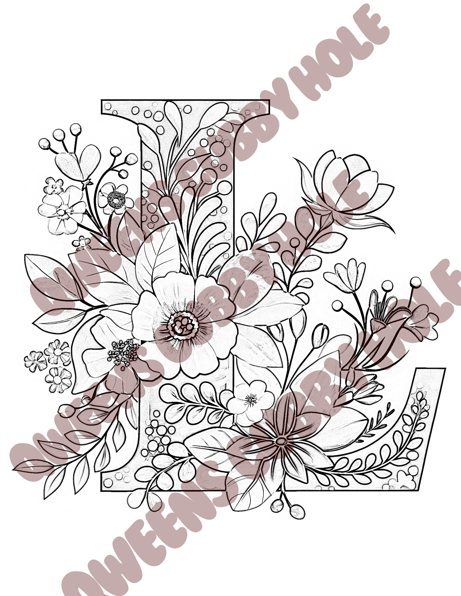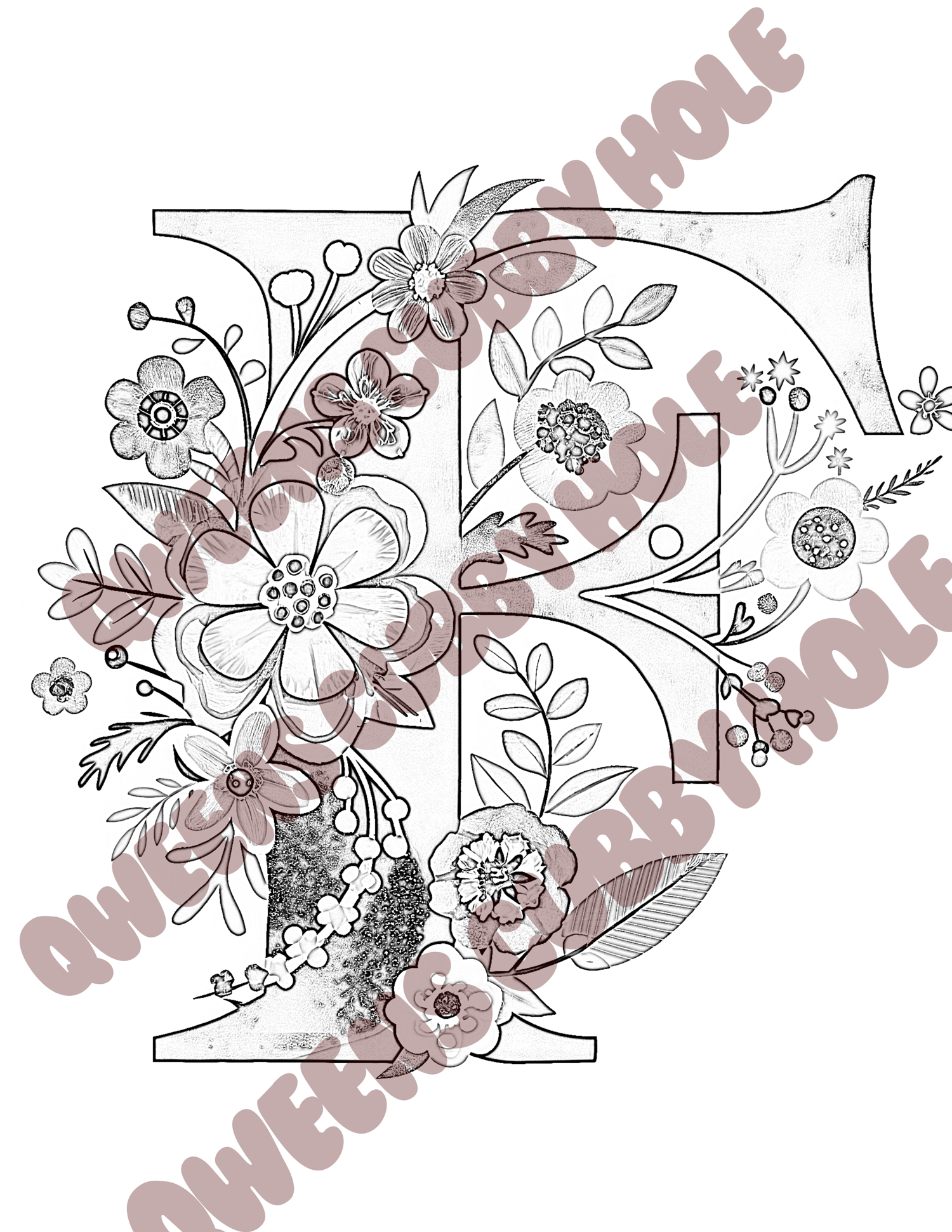 26pc FLORAL ALPHABET 26 COLORING PAGE BUNDLE