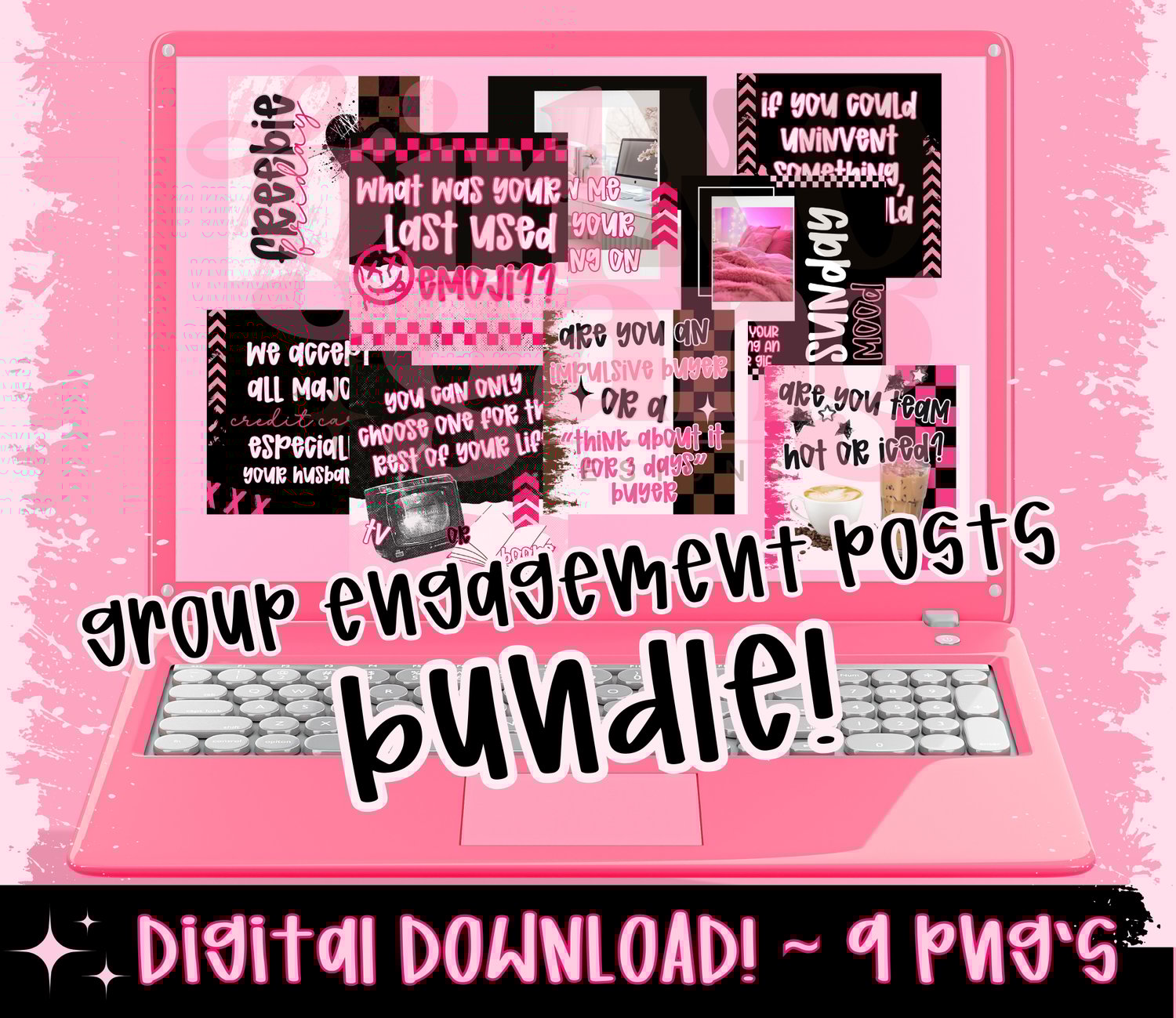 group engagement posts - 9 PNG posts included! Pink edgy aesthetic