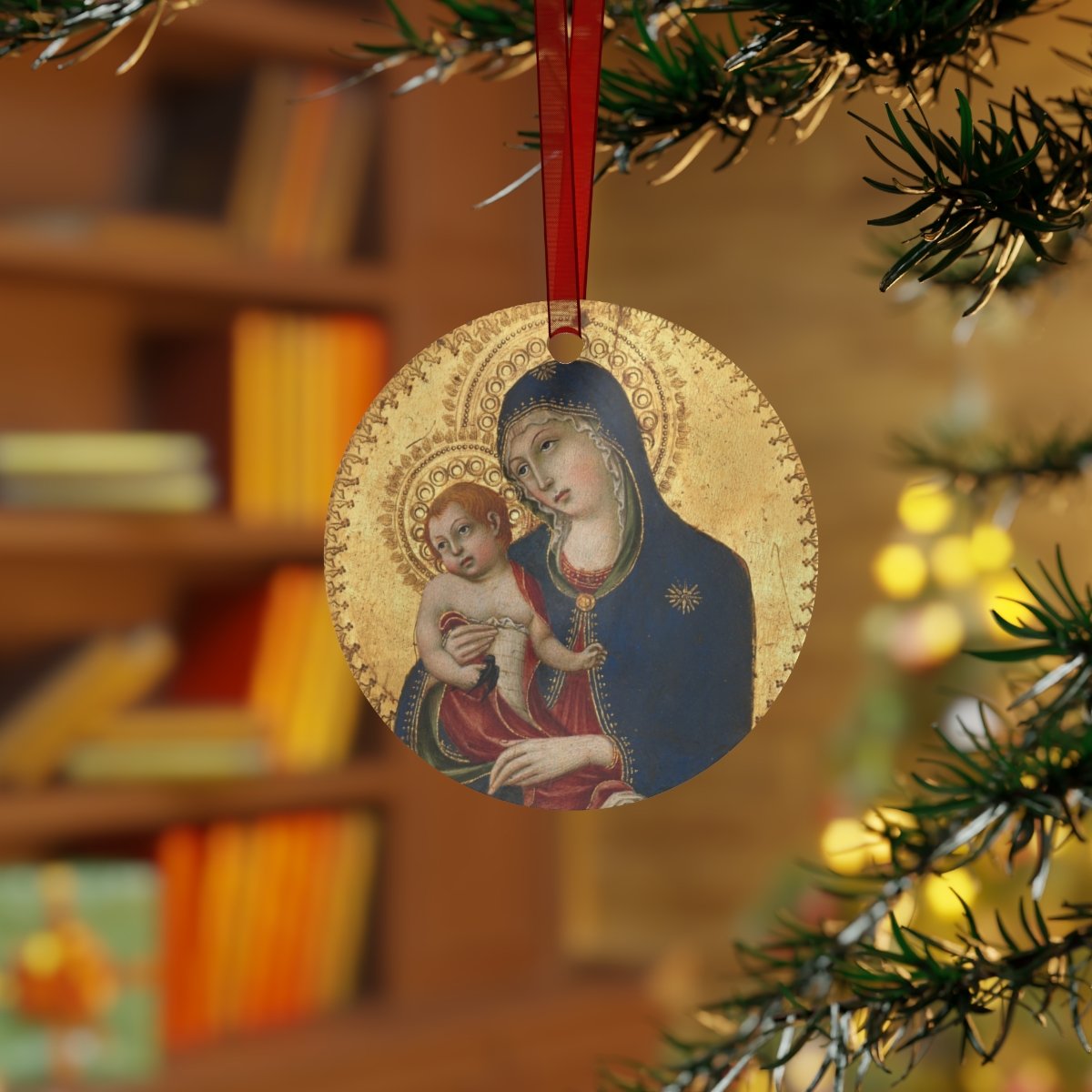 A collection of four beautiful tree ornaments inspired by the golden age of central Italian sacred art, the mid 14th century. Each piece reproduces details from 14th-century Sienese and Florentine masterpieces, p rinted on durable metal with a soft satin finish.