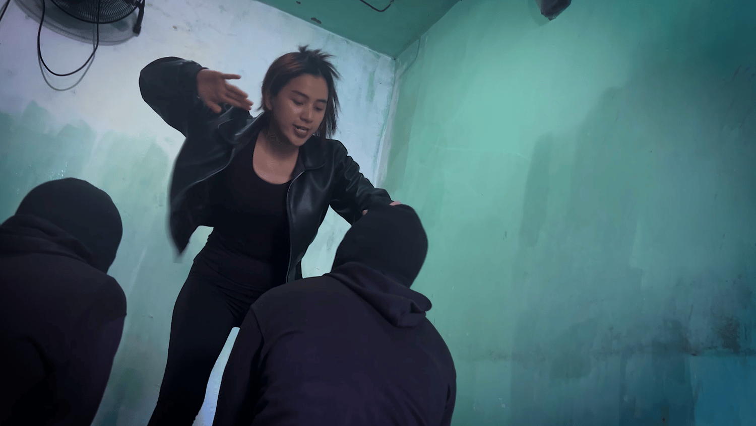 her face is hard, she has set some tasks for her groupe of slaves, she calls them her cattle
