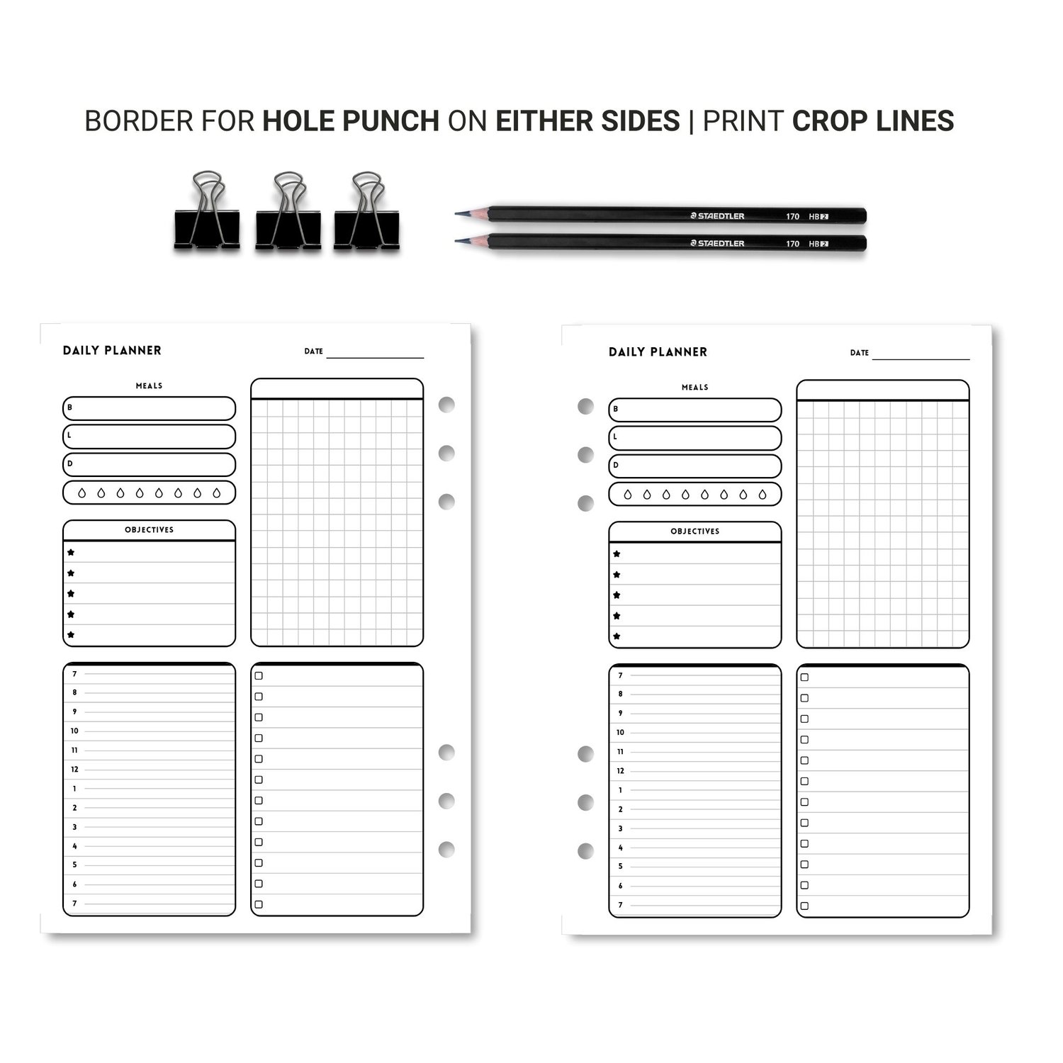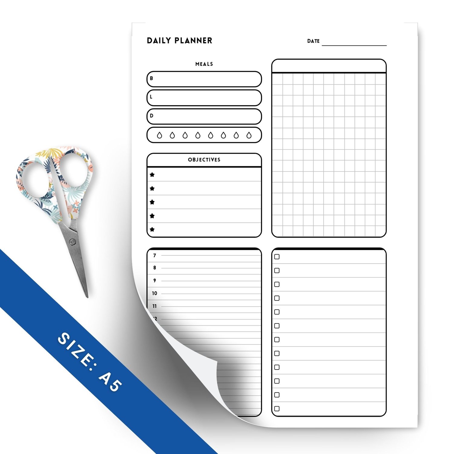 Minimalist Daily Planner | A5 Planner with Meals | Printable Daily Organizer