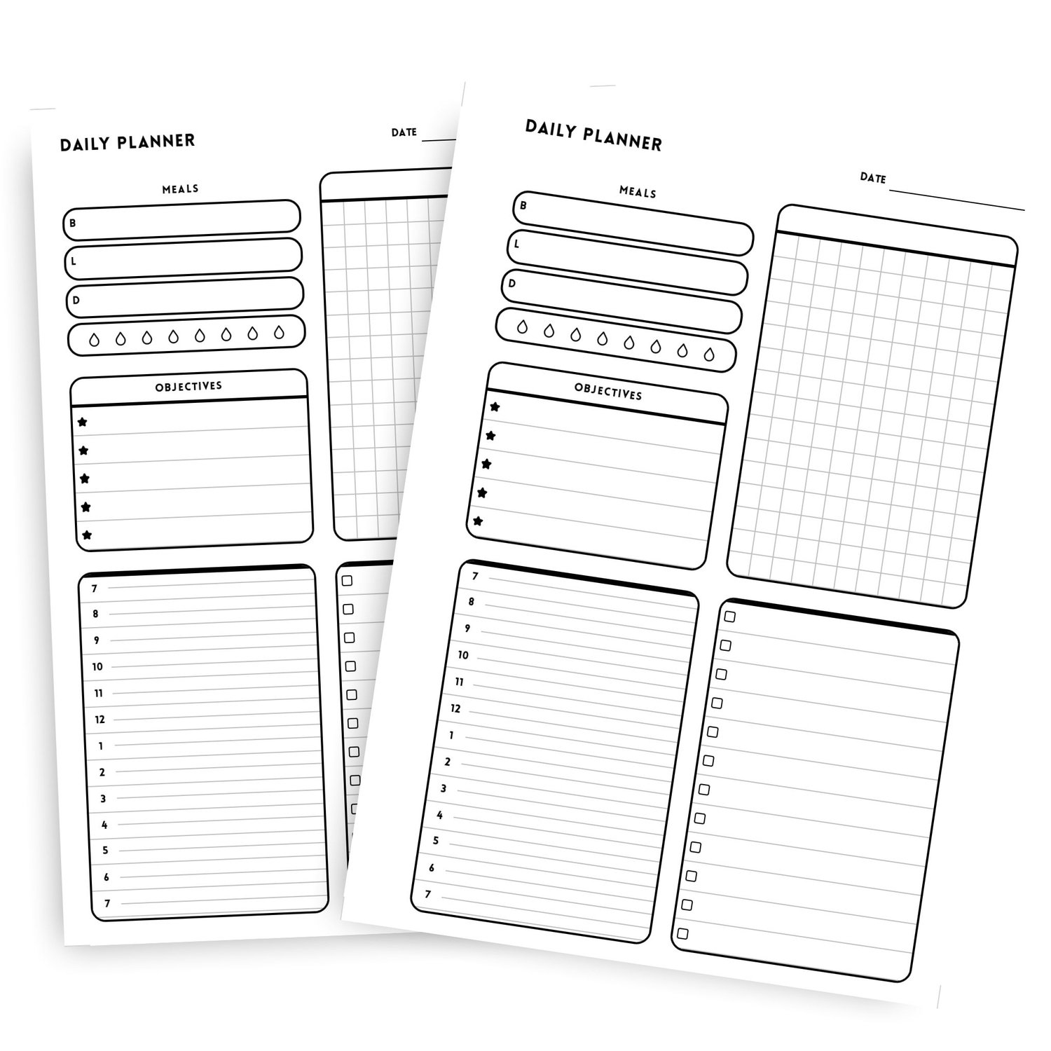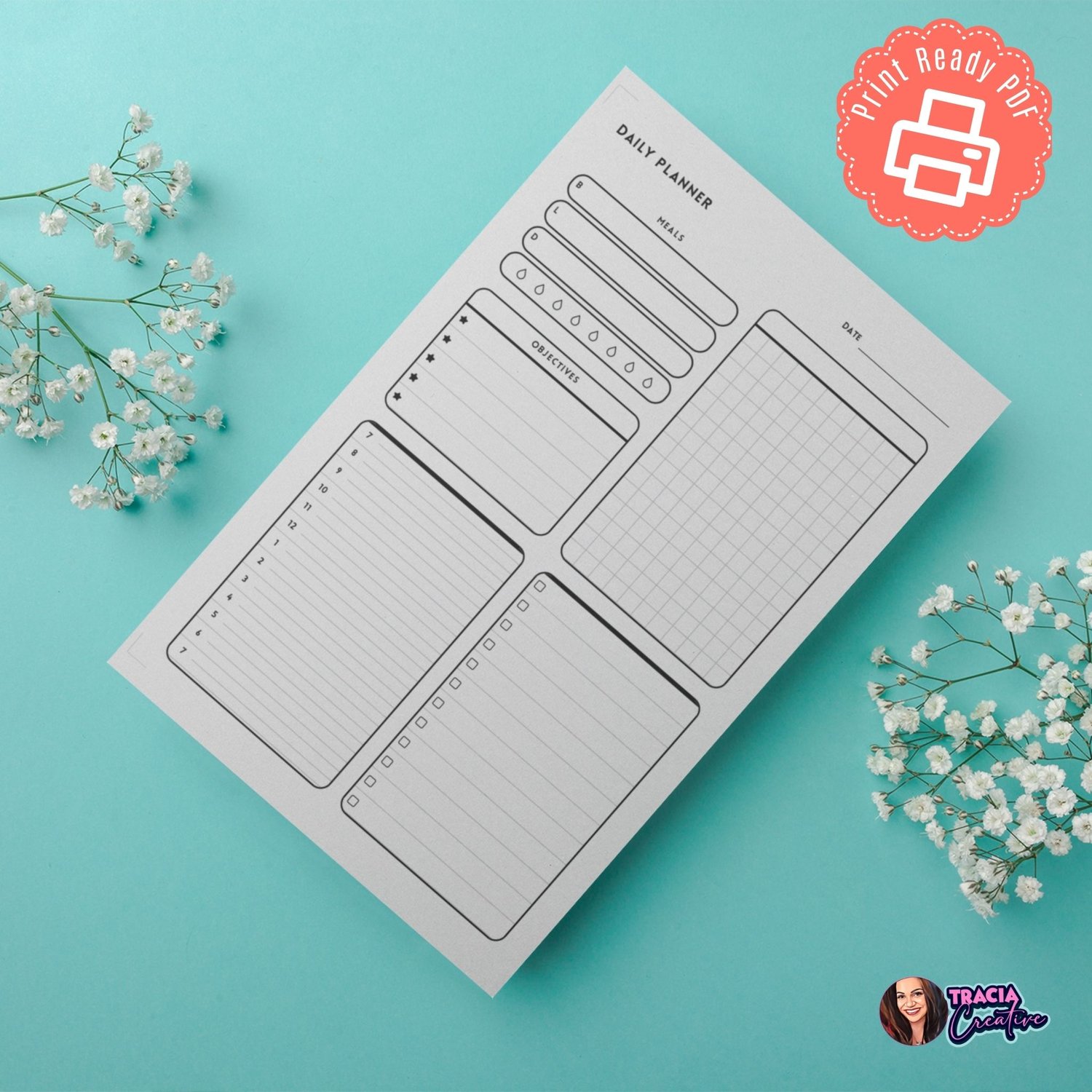 Minimalist Daily Planner with Meal Planner - Printable Digital Download PDF