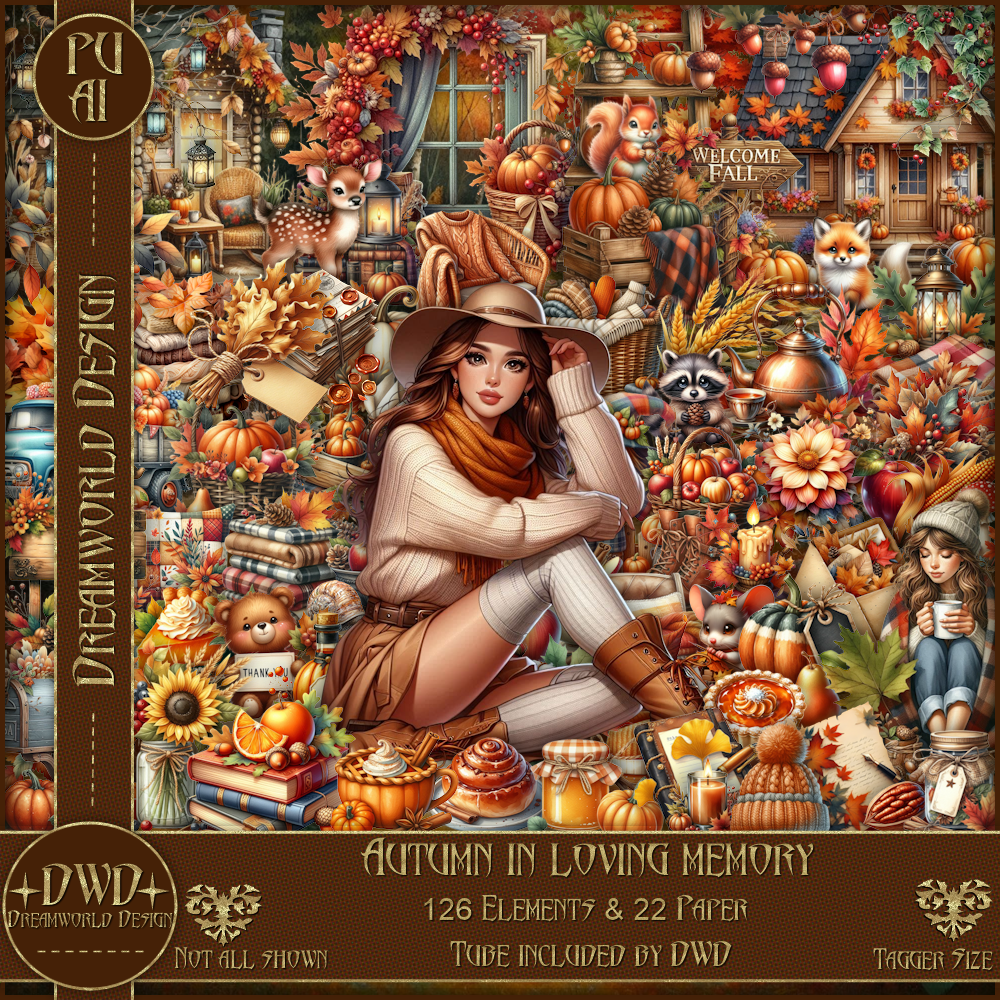 *Autumn in loving memory* is a tagger-size kit with 126 elements & 22 papers.