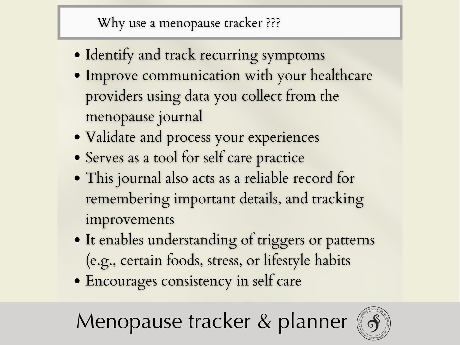 ✅ Symptoms tracker: 3 pages (Use these to keep track of what triggers each of your menopause symptoms, or what makes it better)
