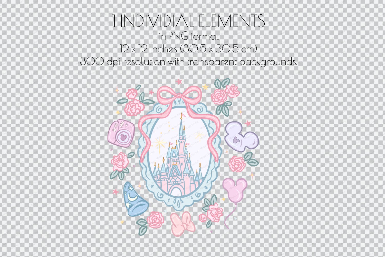 This Disney Floral Magic Kindom PNG images will be perfectly sutable for projects such as printing projects, sublimation,party invites, scrapbooking, greeting cards !!!