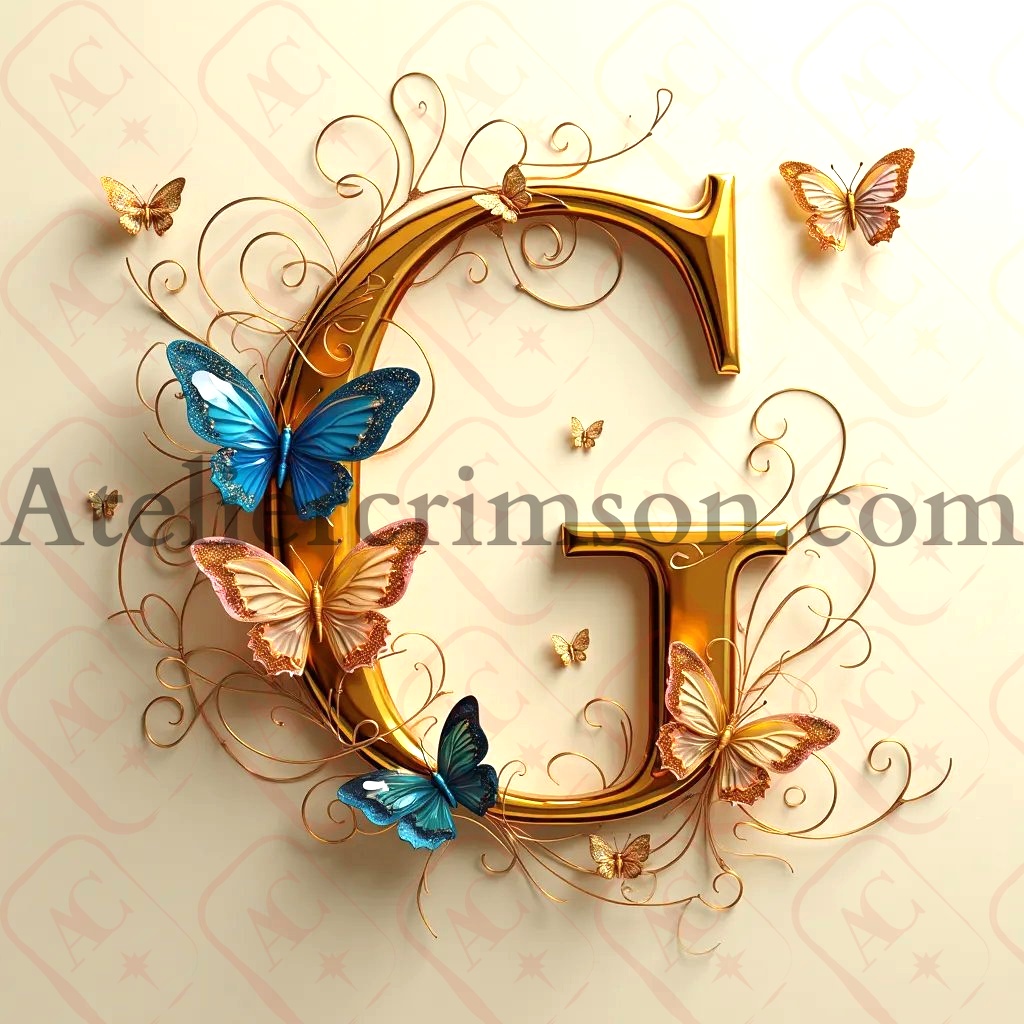 The letter G golden luxury butterfly .Download Now this high quality AI-generated image, perfect for adding a touch of luruxy and creativity to any space.