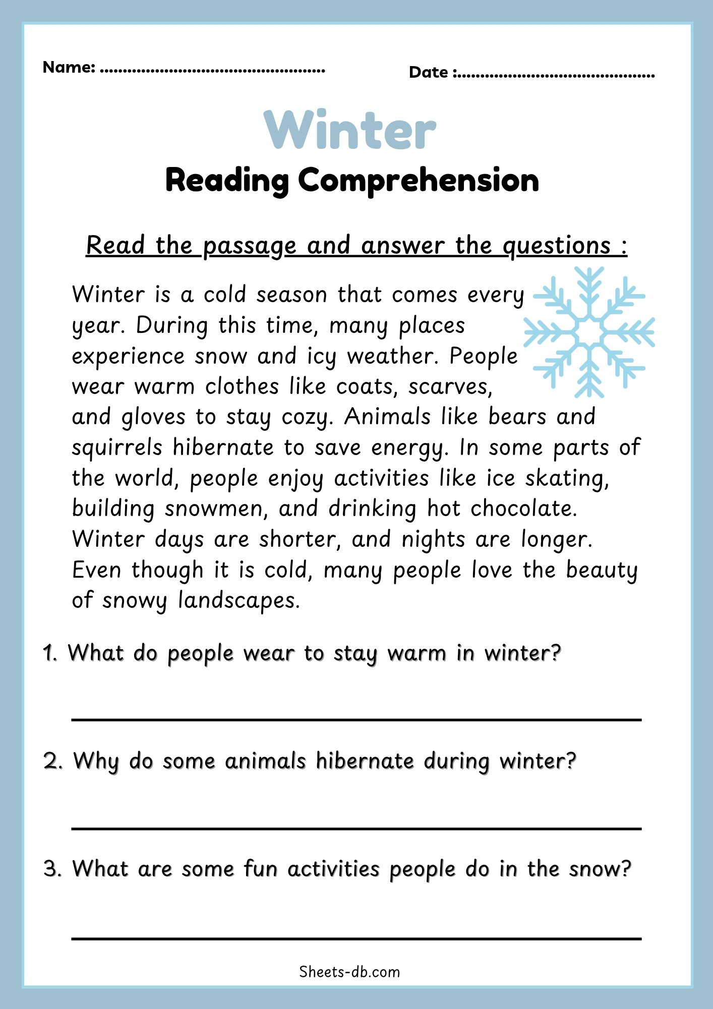 Winter Reading Comprehension Worksheets